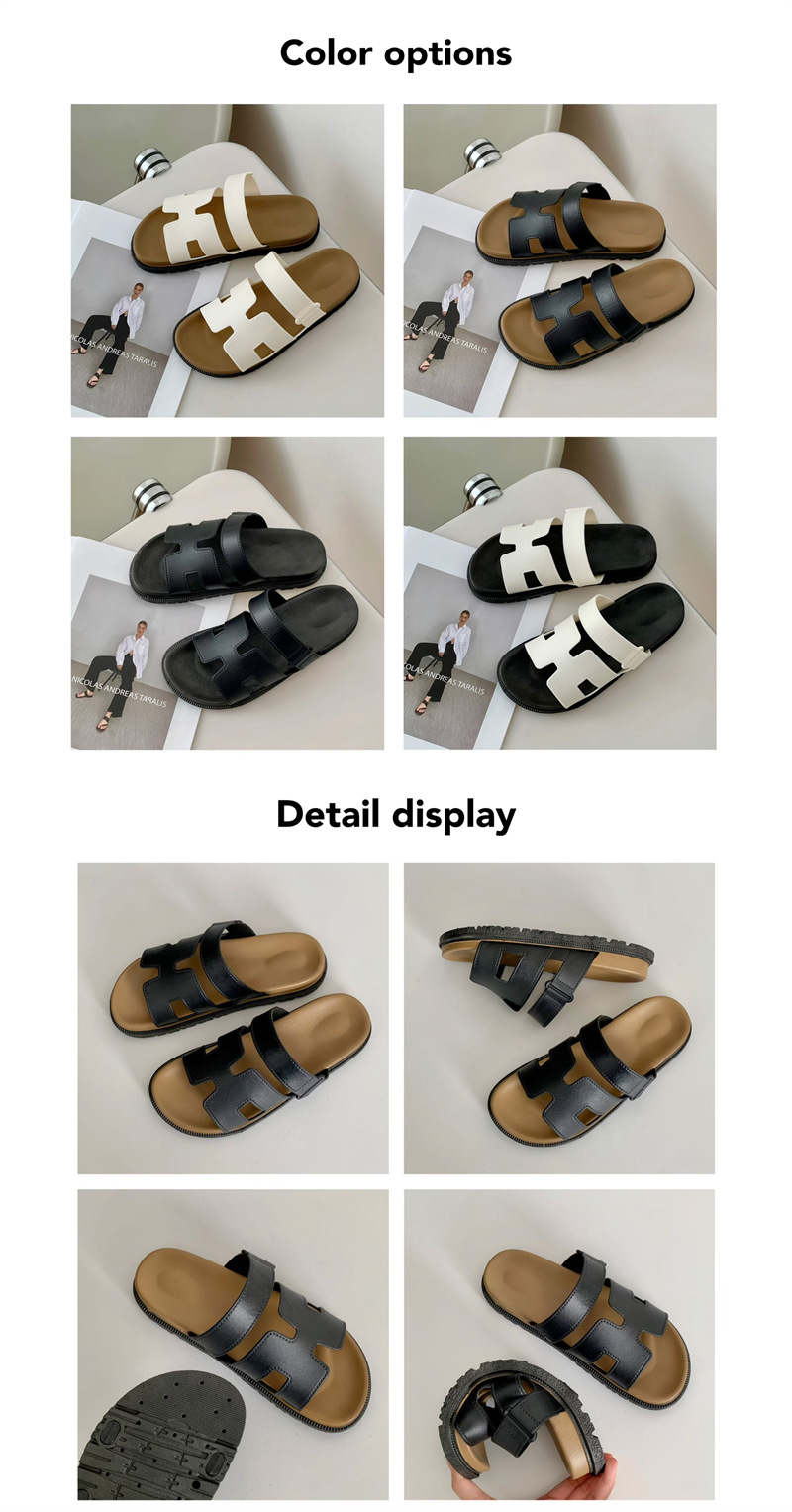 Erjiu スリッパ女性用 2025 新しいフラットソールベルクロサンダル本革ハーフスリッパカップルビーチシューズ