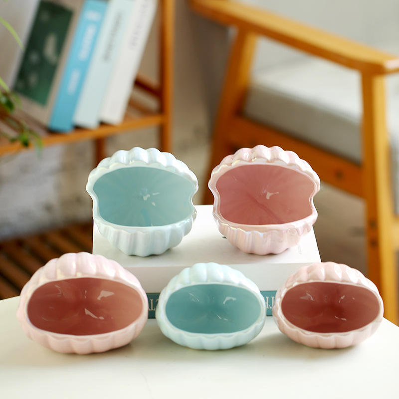 陶瓷创意贝壳首饰盘工艺品小摆件耳环饰品收纳盘展示电镀工艺跨境