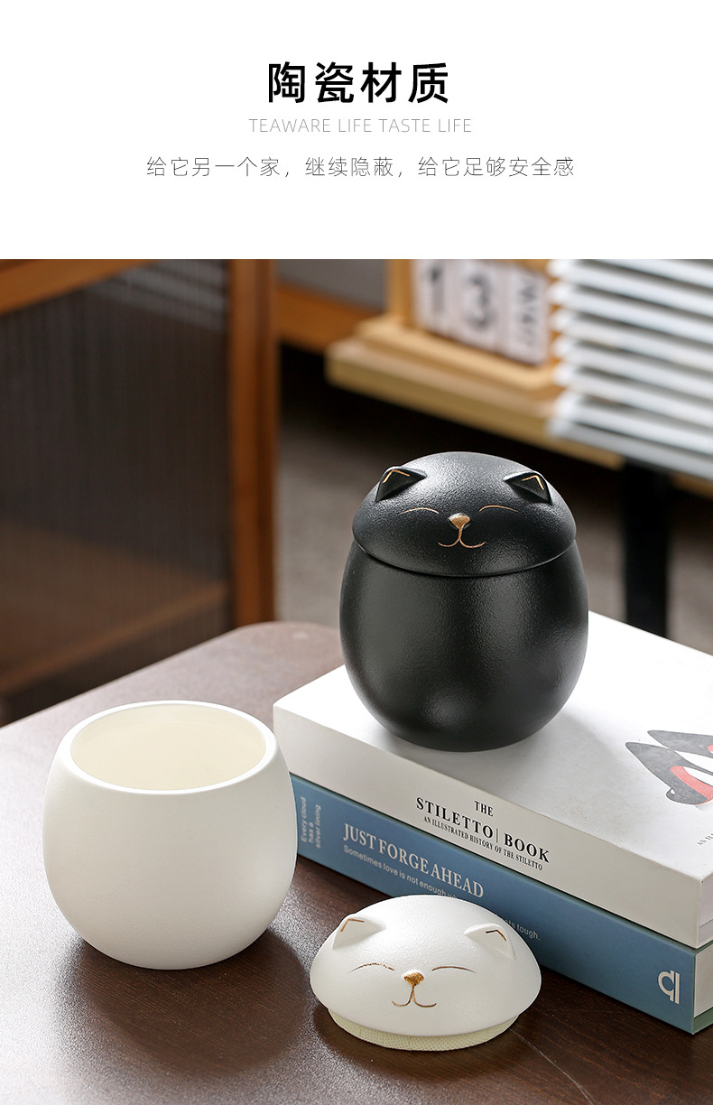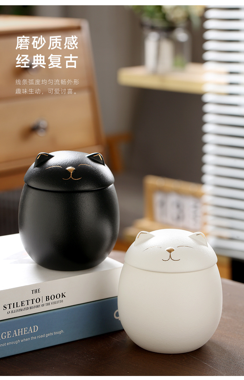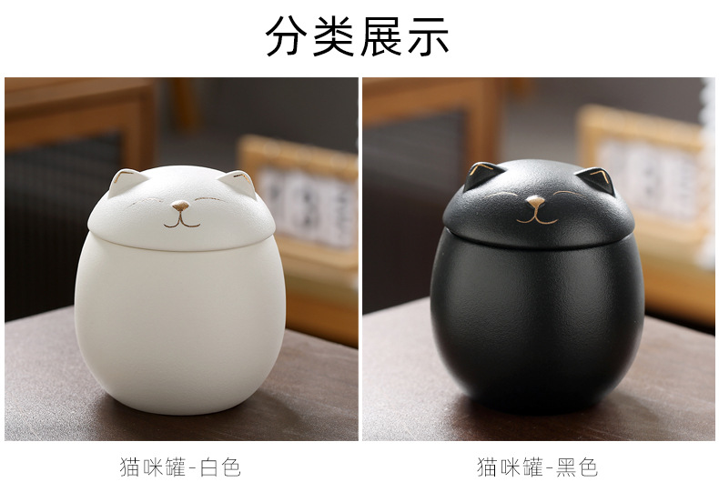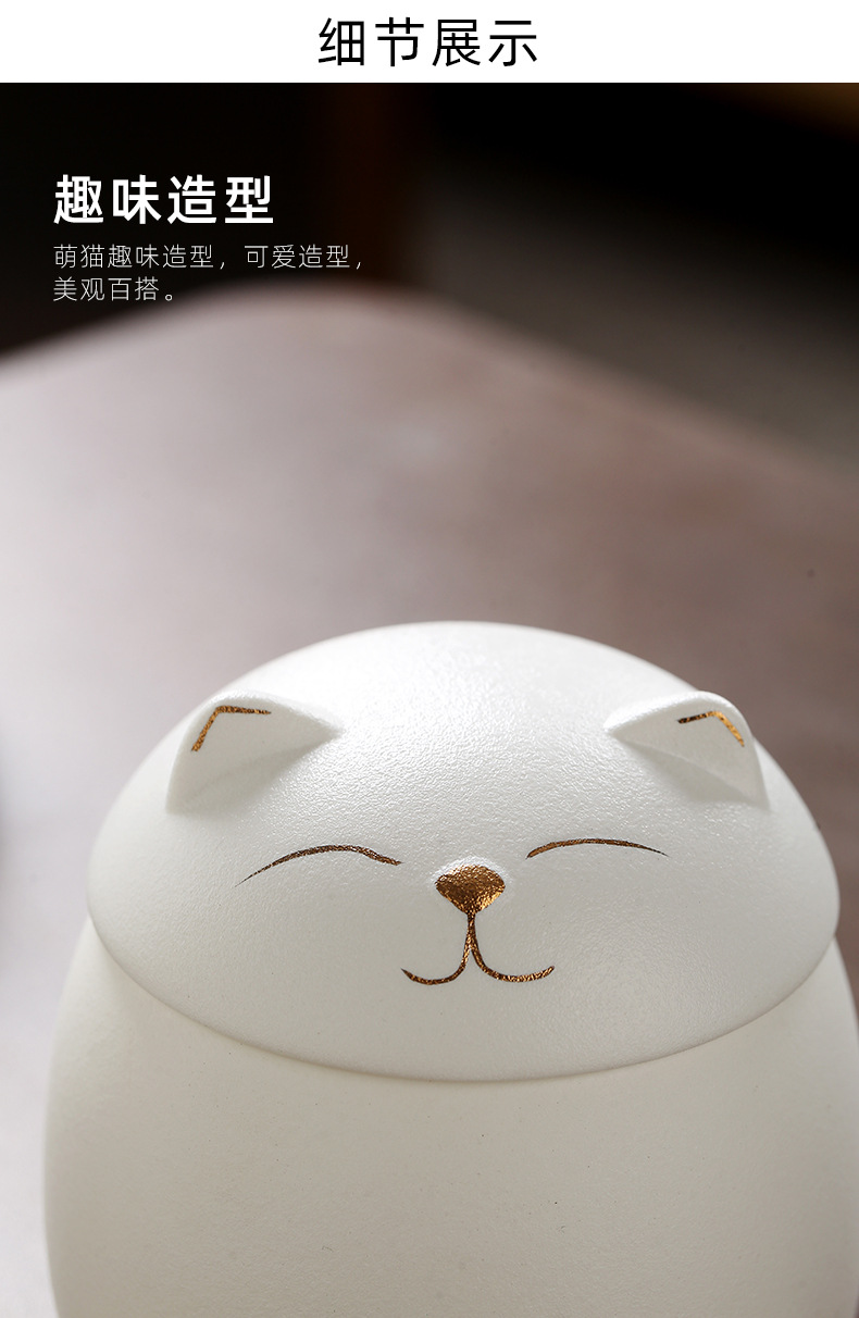 珍福器 猫咪茶叶罐花猫陶瓷密封罐香粉瓶迷你小号防潮罐茶仓干果