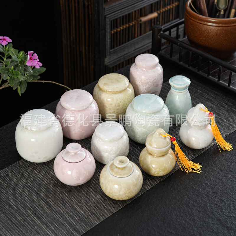 結晶釉薬新携帯陶磁器密封缶携帯茶葉缶香粉膏方貯蔵缶レトロ収納瓶