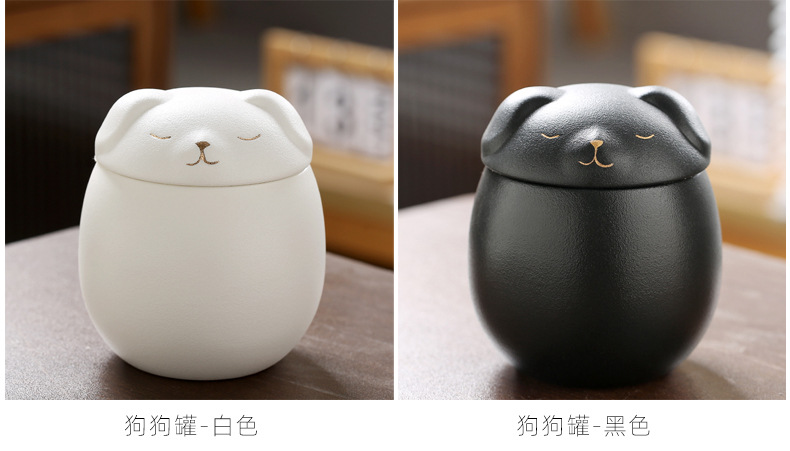 かわいい眠っている犬セラミック缶粗い陶器茶缶密封缶フレグランスパウダーボトル防湿保存缶ポータブル旅行茶倉庫