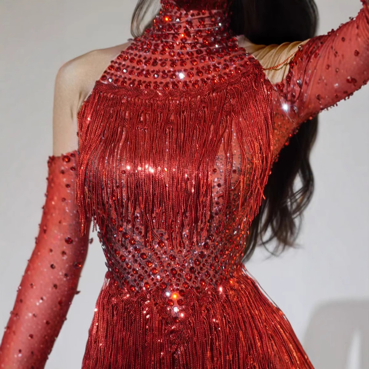 GC誕生日演出スパンコールダイヤモンド外出パーティーパーティー優雅スリム長袖ミニスカートミニワンピース