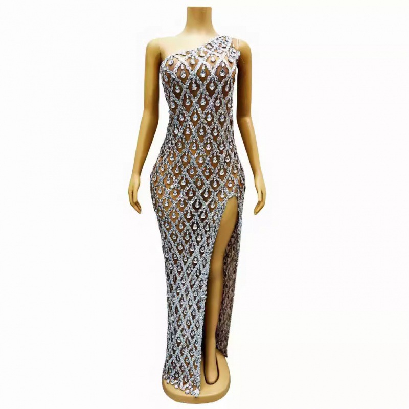 欧米の新型ファッションアマゾンのセクシーなタイトなネットの透視気質はお尻の金色の舞台を包んで出演服を司会します。