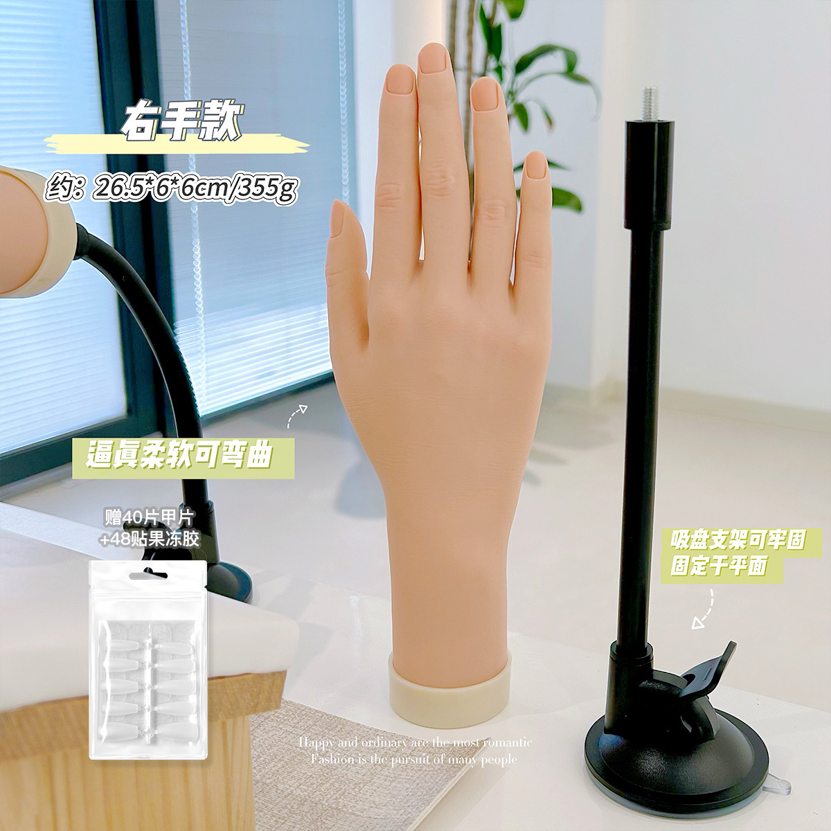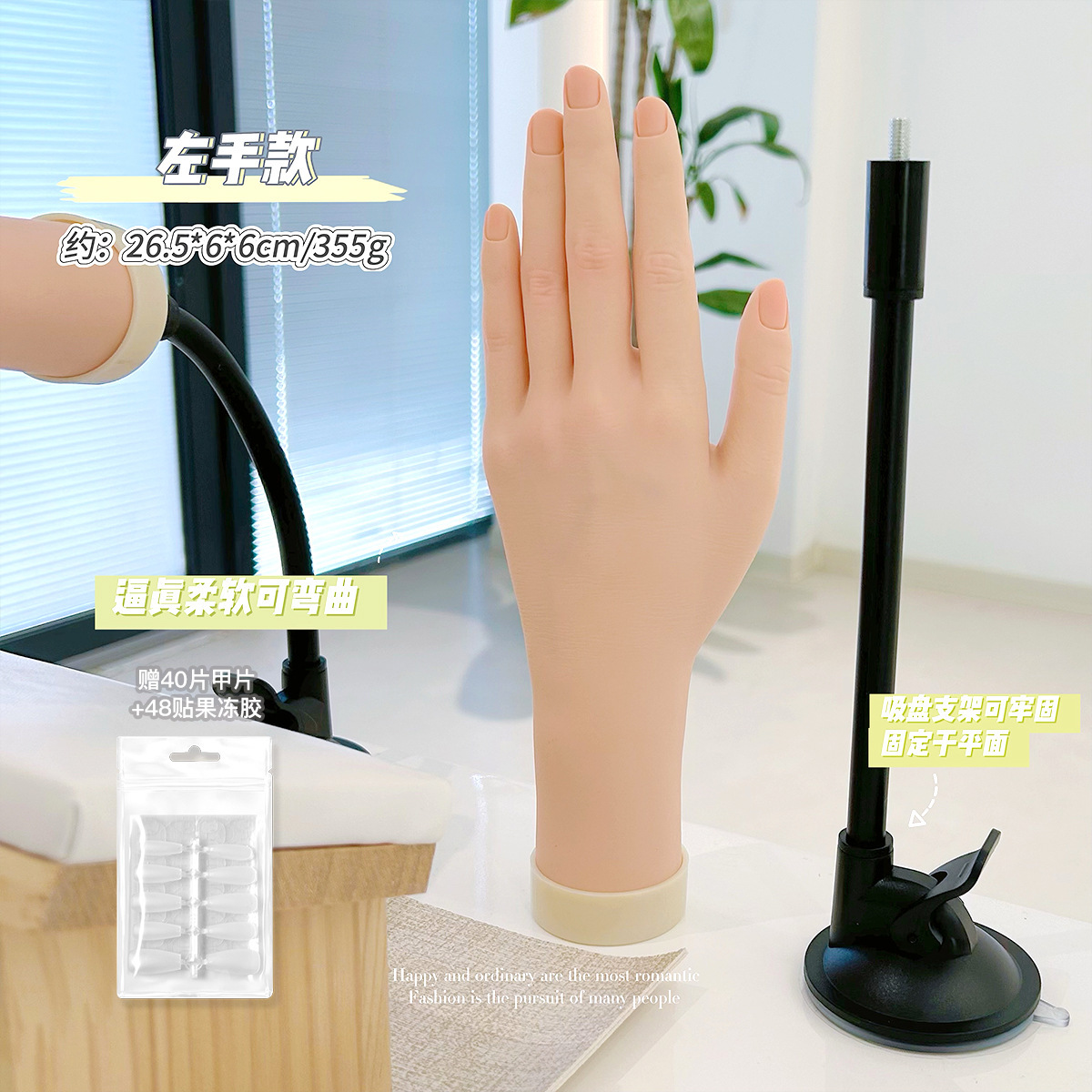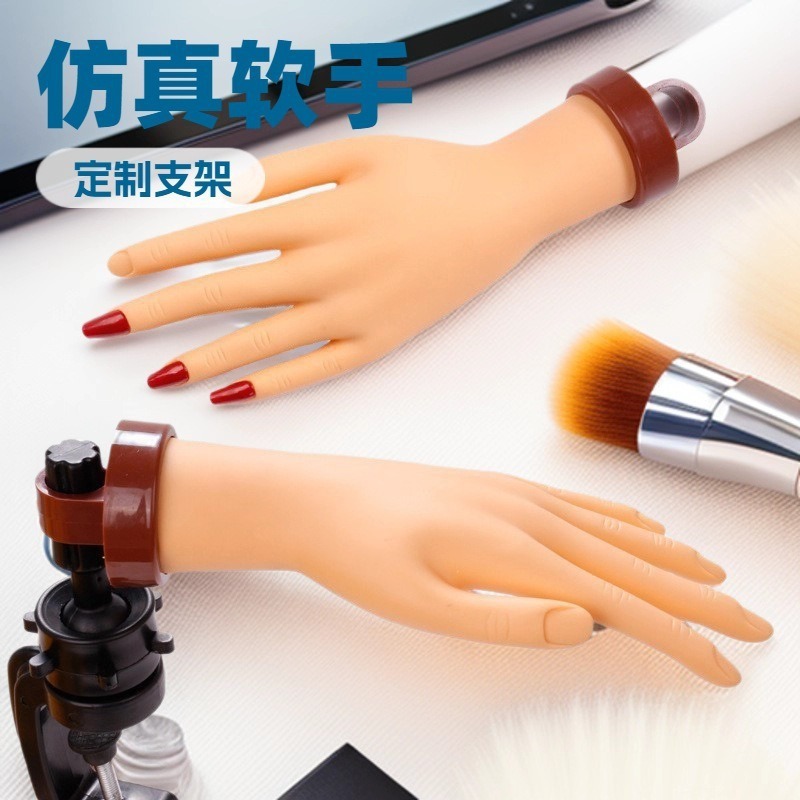 美甲练习手模支架假手仿真软手模型带固定台式支架展示