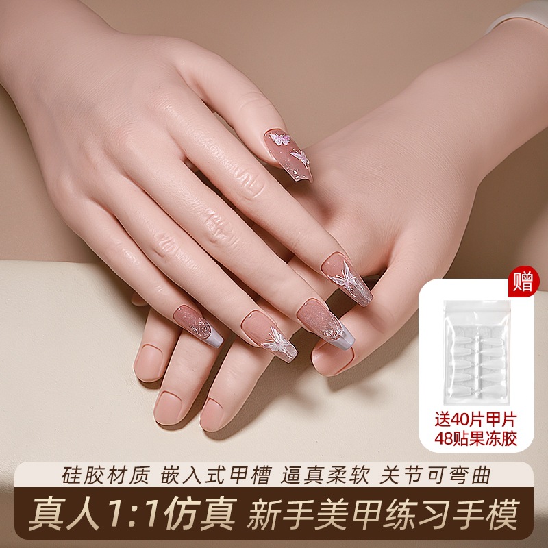 美甲练习仿真手模带关节柔软硅胶新款假手指初学者插甲片展示工具