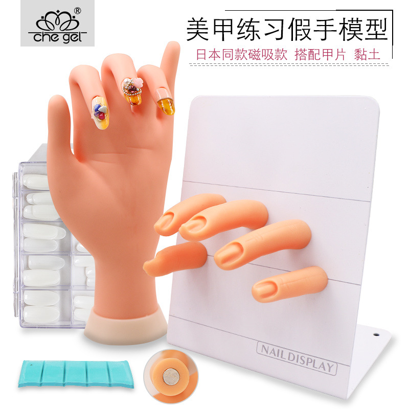 日本のネイルツールの練習はゴムの手の型の磁石の偽の指の爪の爪の片の初心者の練習用を曲げます。