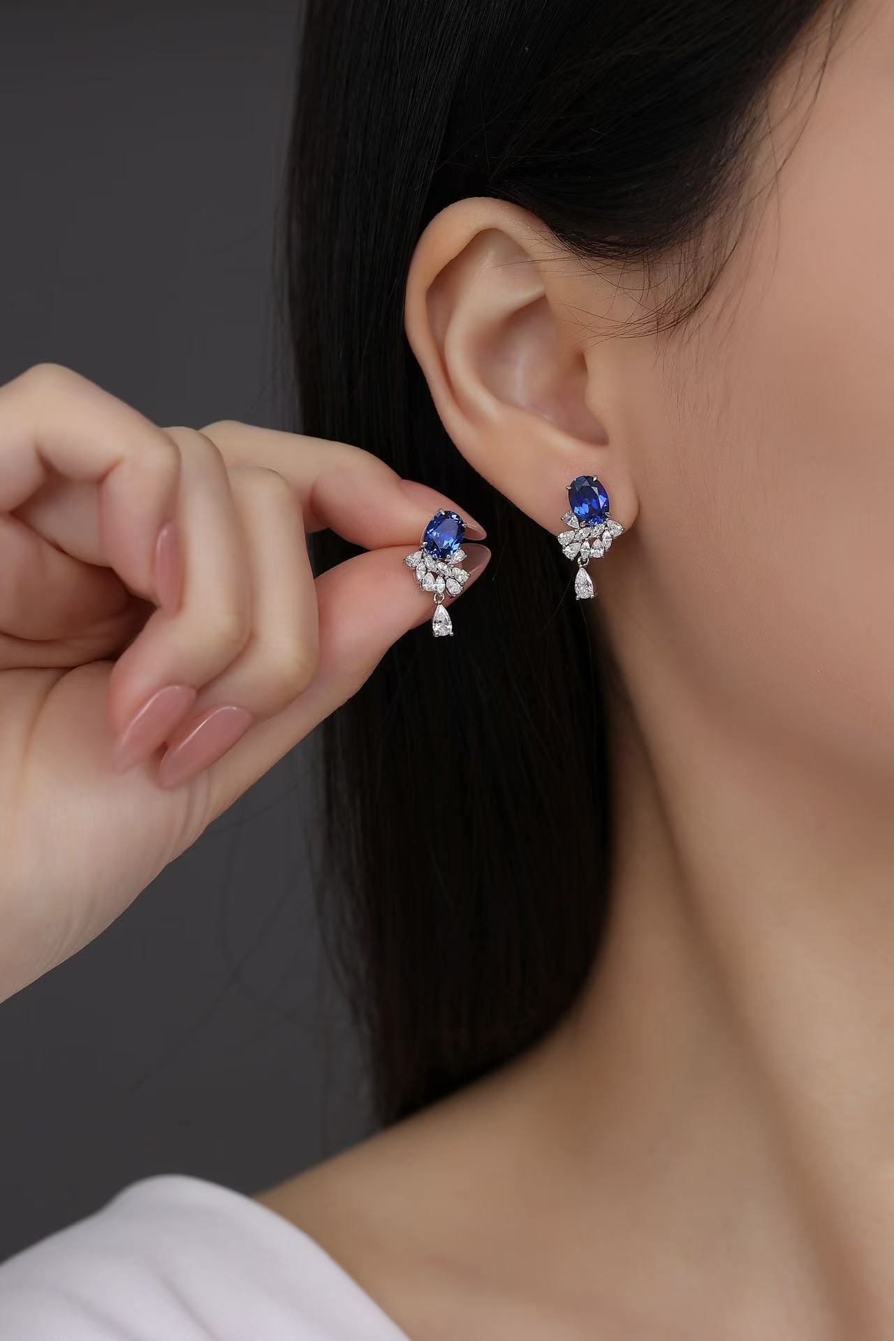 2カラット育成ロイヤルサファイアピアス戴妃女高級感小衆気質ペンダント誕生日バレンタインデープレゼント