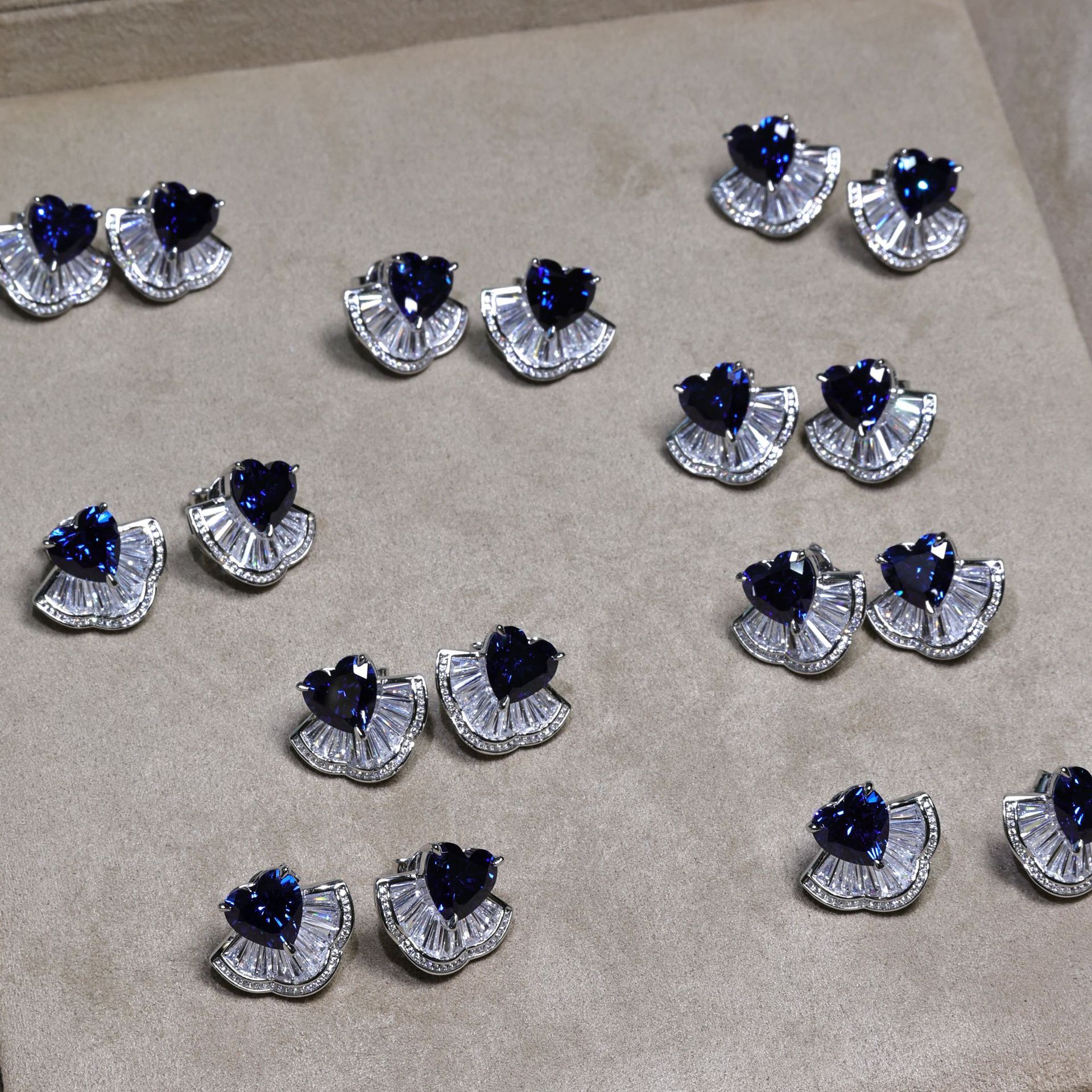 11.3ct培育宝石时尚精致爱心裙摆扇形耳环轻奢气质s925银针耳钉
