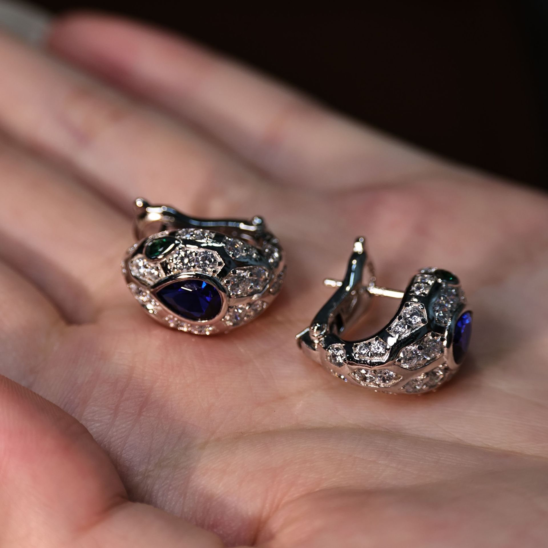 培育蓝宝石蛇头耳钉微镶满钻耳拍耳环欧美直供跨境时尚气质饰品