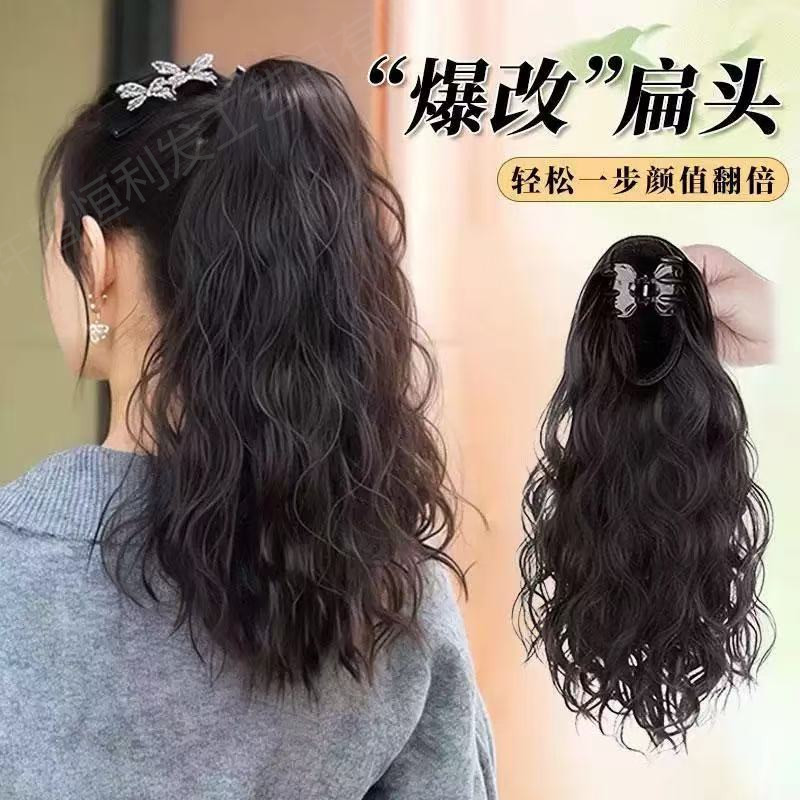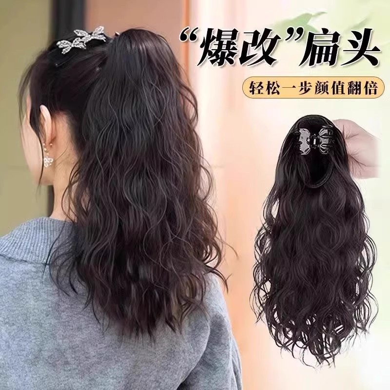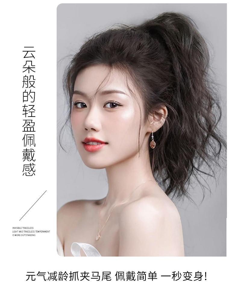 喷泉半扎高马尾卷发气质增高颅顶新款抓夹爆款假发高马尾批发价格