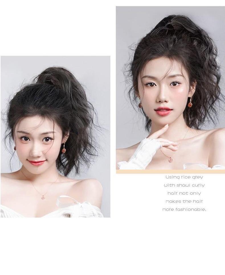クリップ馬尾梨花巻超軽クリップ高頭蓋頂短馬尾シミュレーション髪自然リアル少女感髪