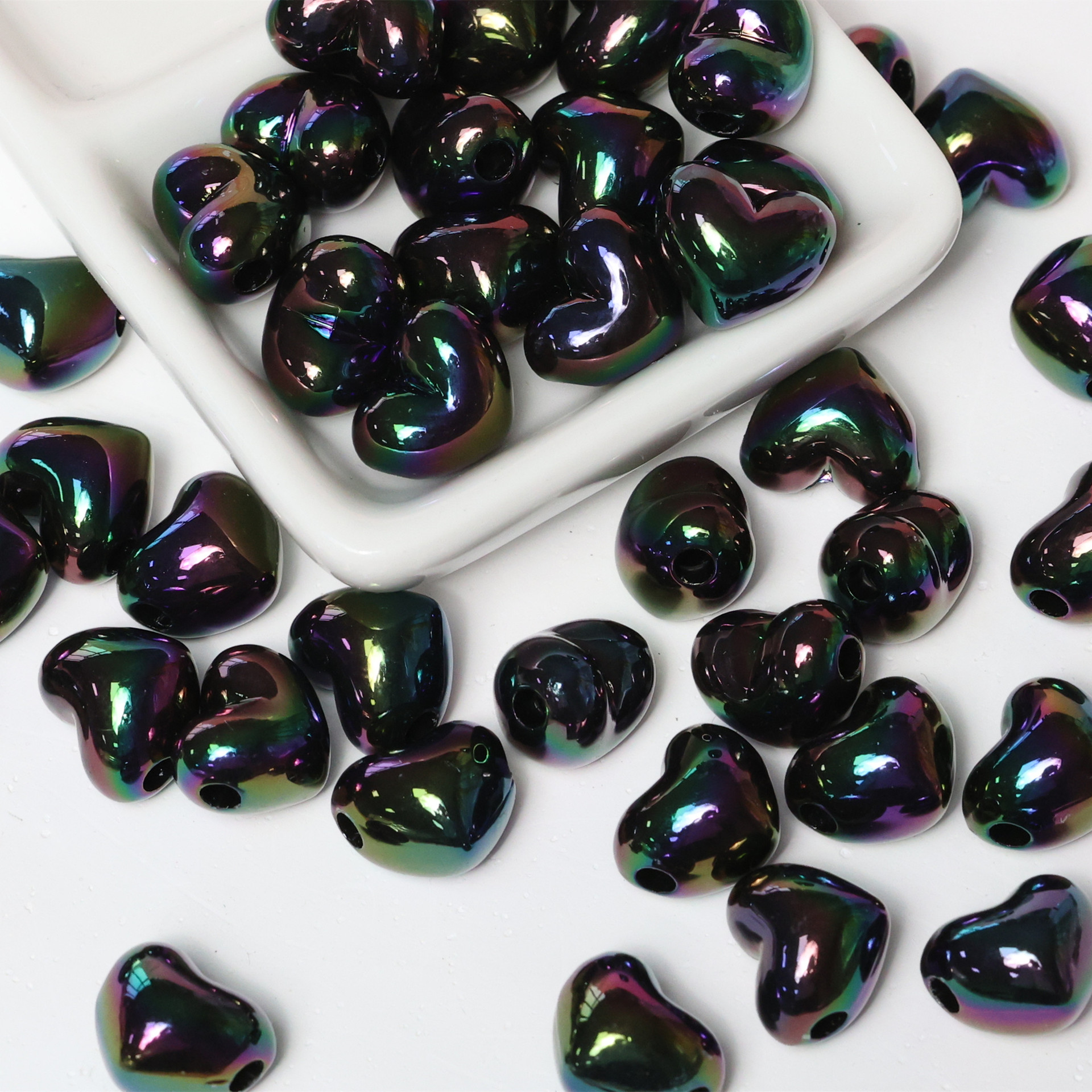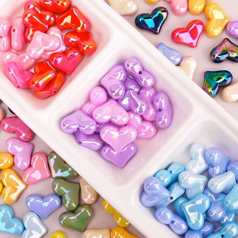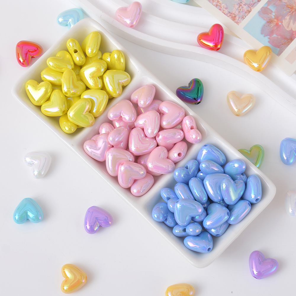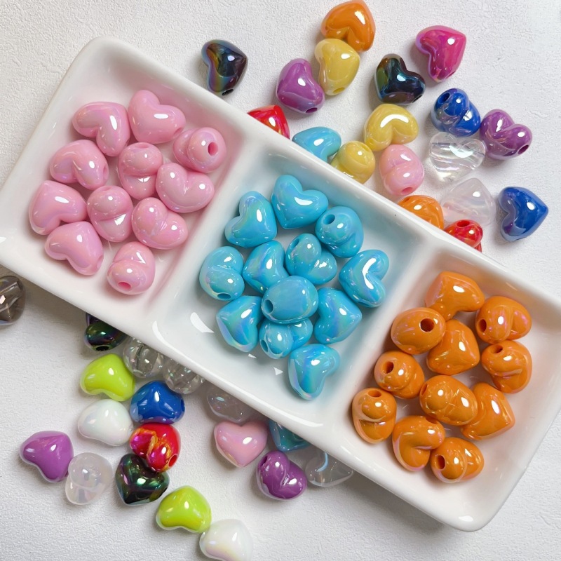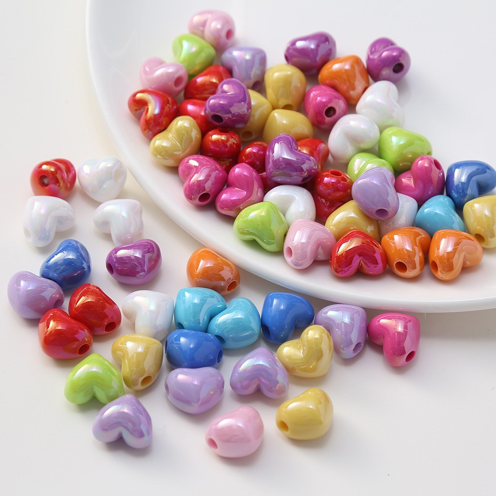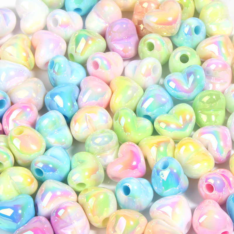 亚克力镀彩竖孔爱心珠子散珠 diy饰品配件手机链包挂心形串珠材料