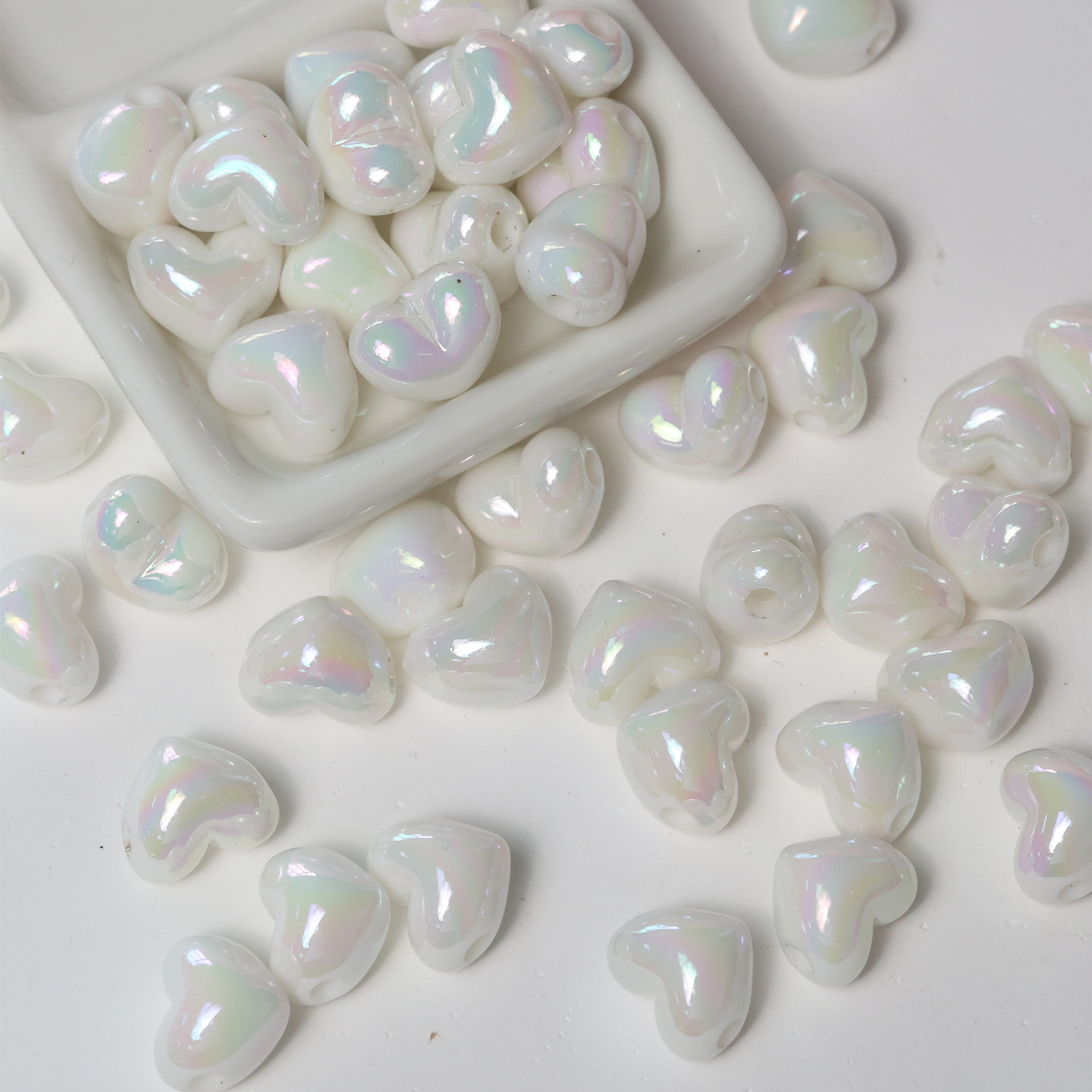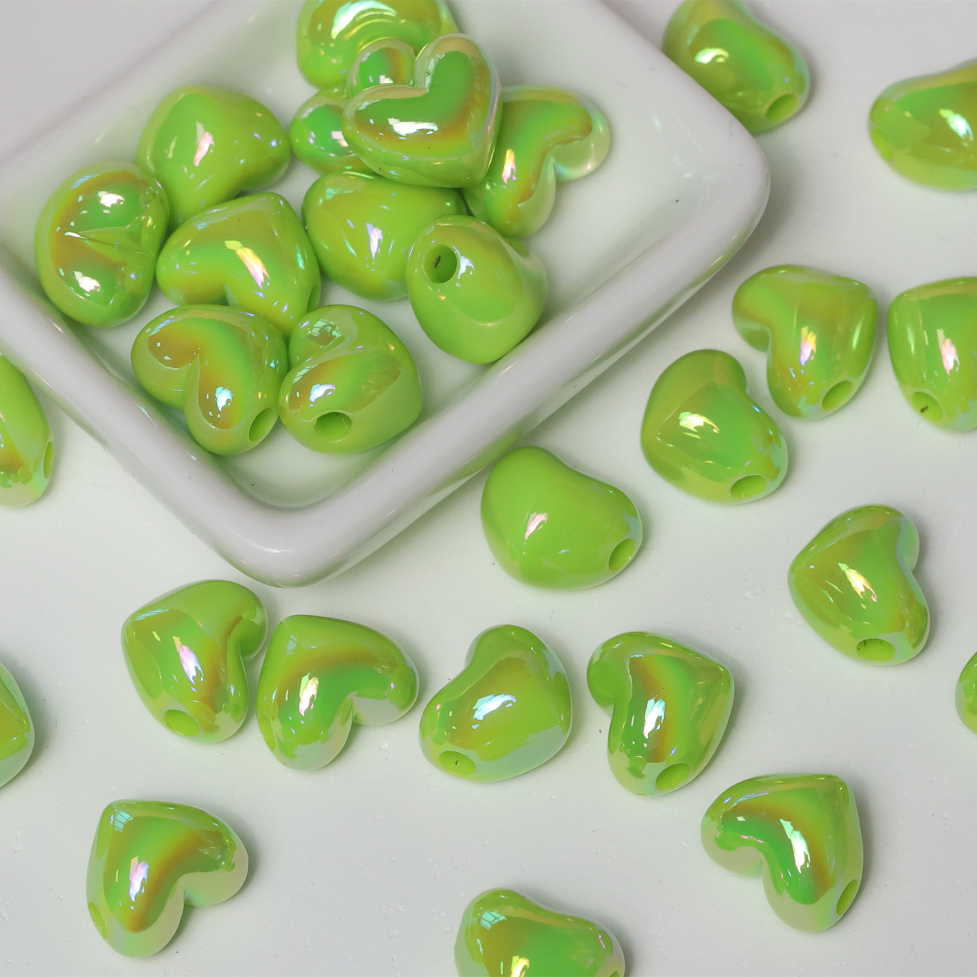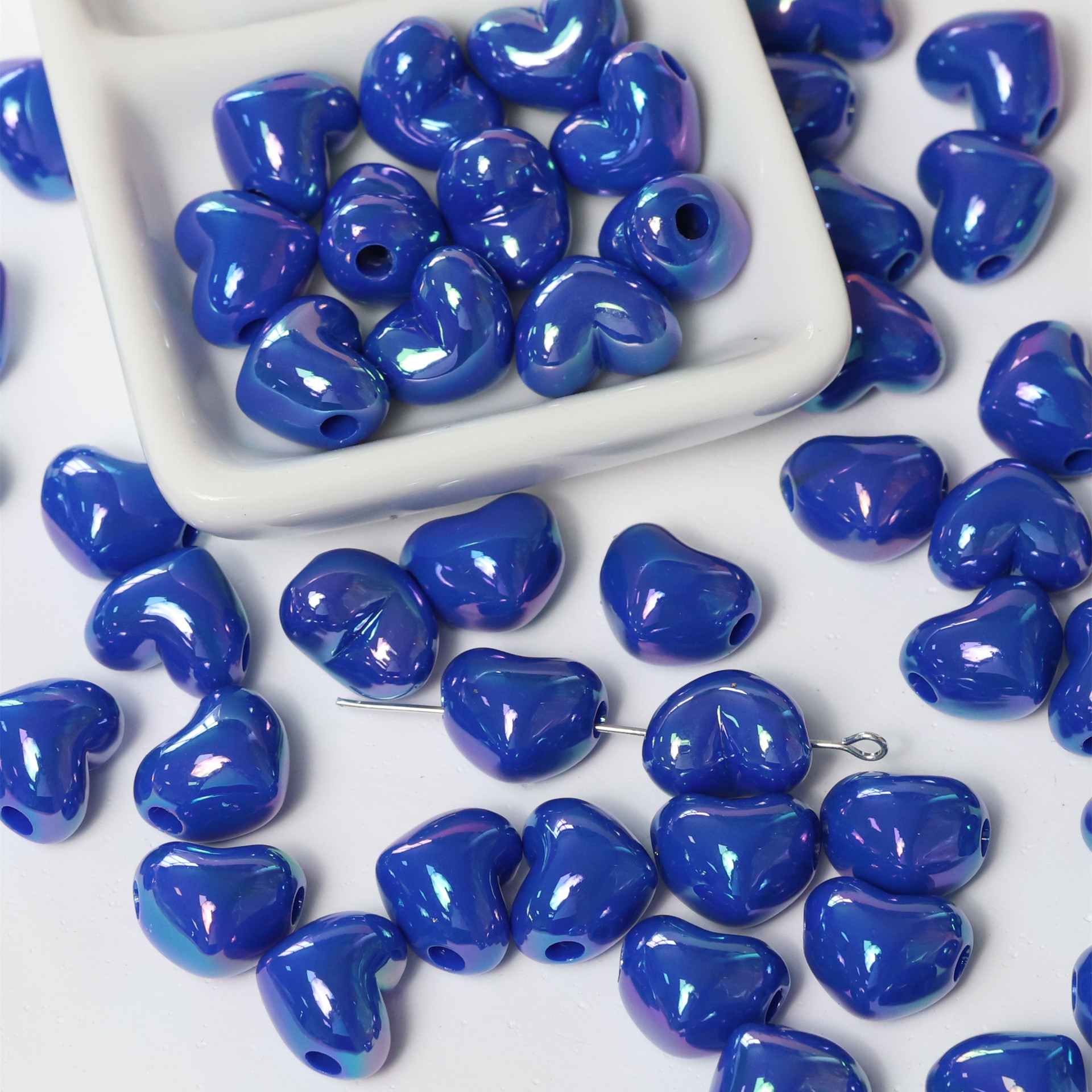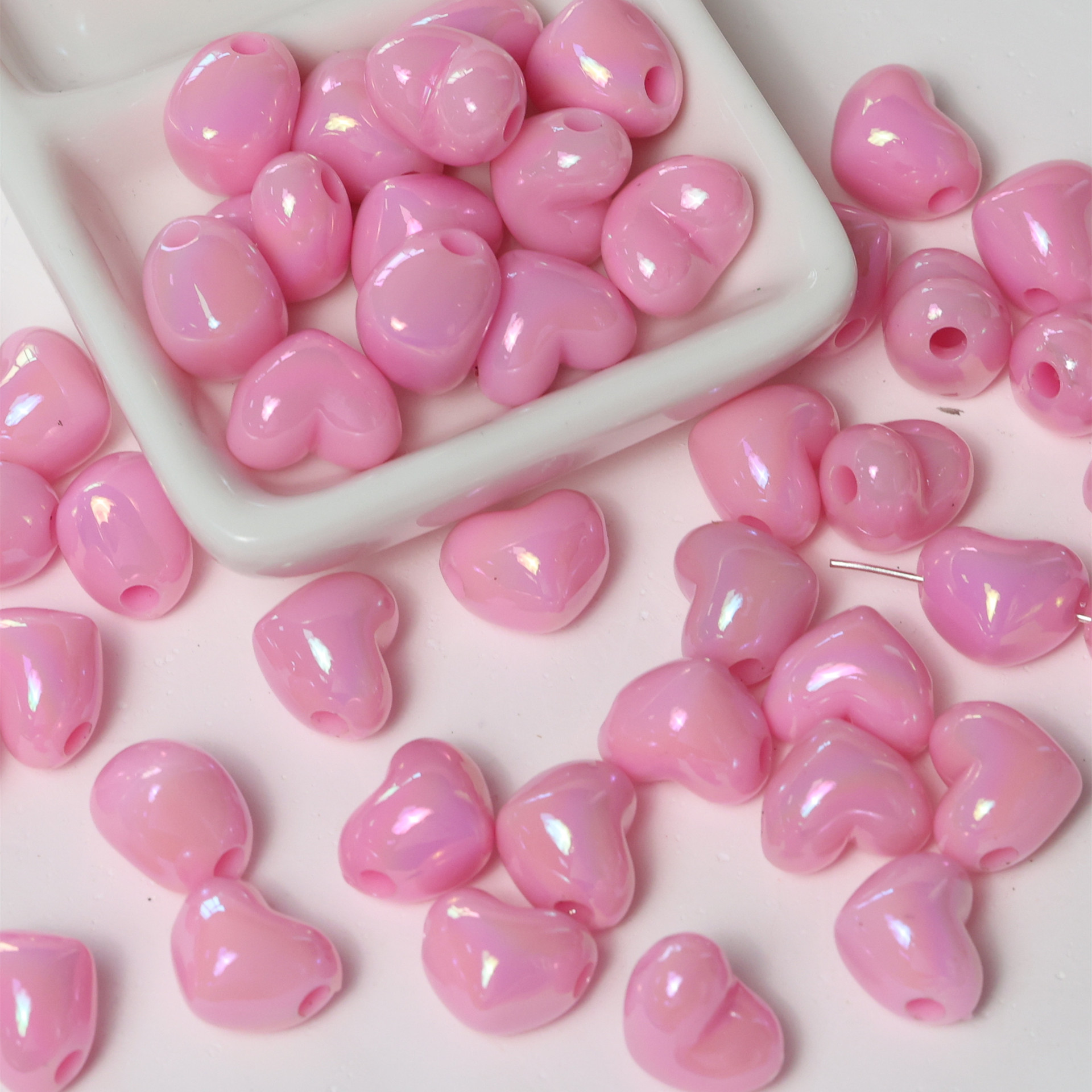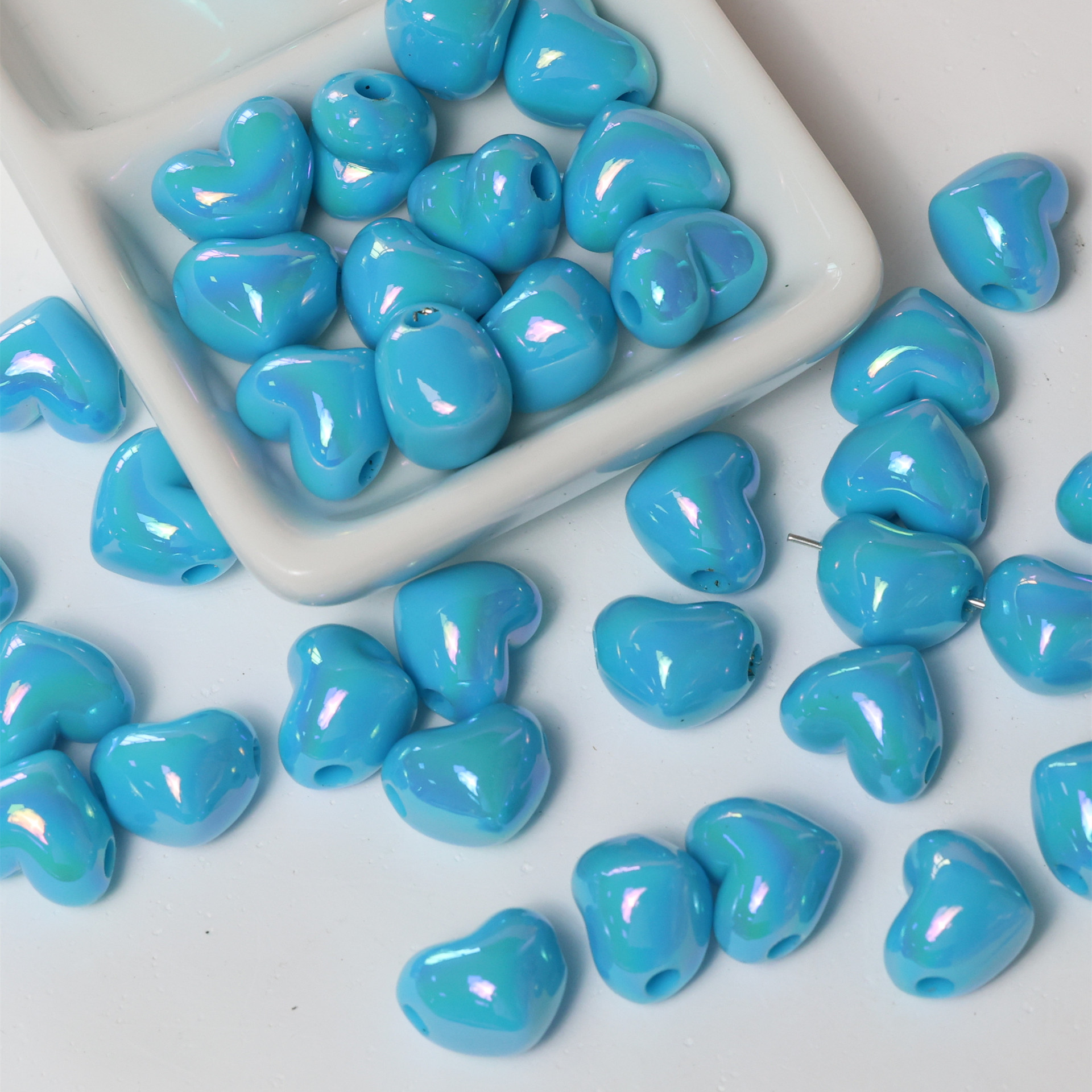 亚克力镀彩竖孔爱心珠子散珠 diy饰品配件手机链包挂心形串珠材料