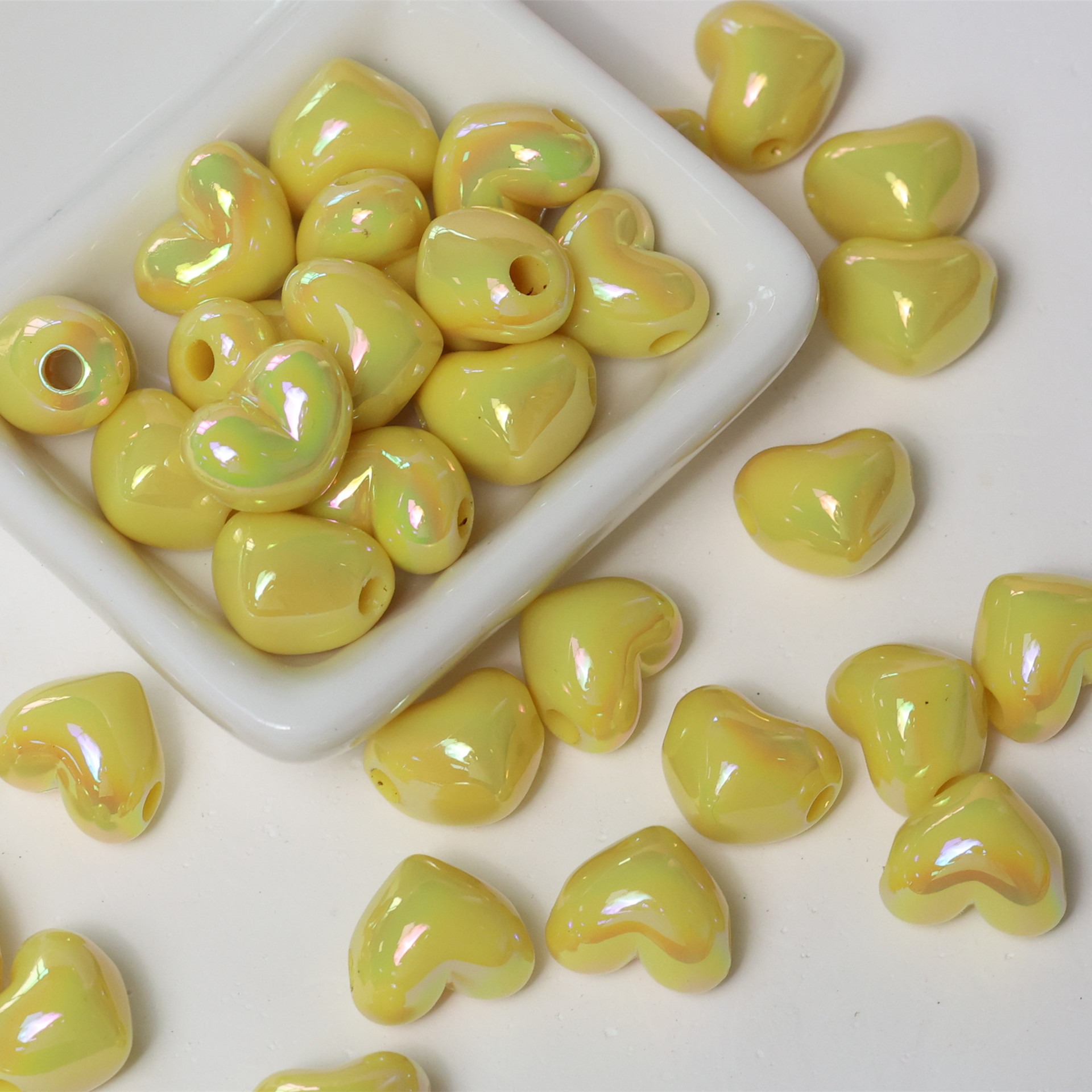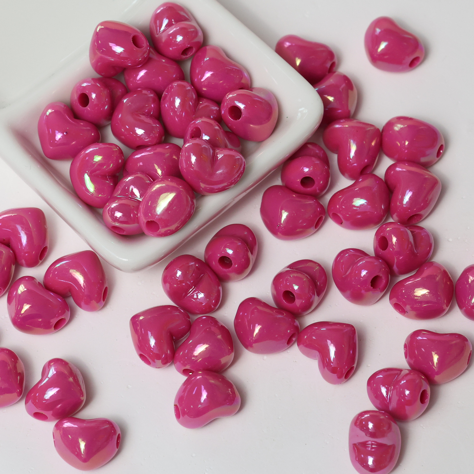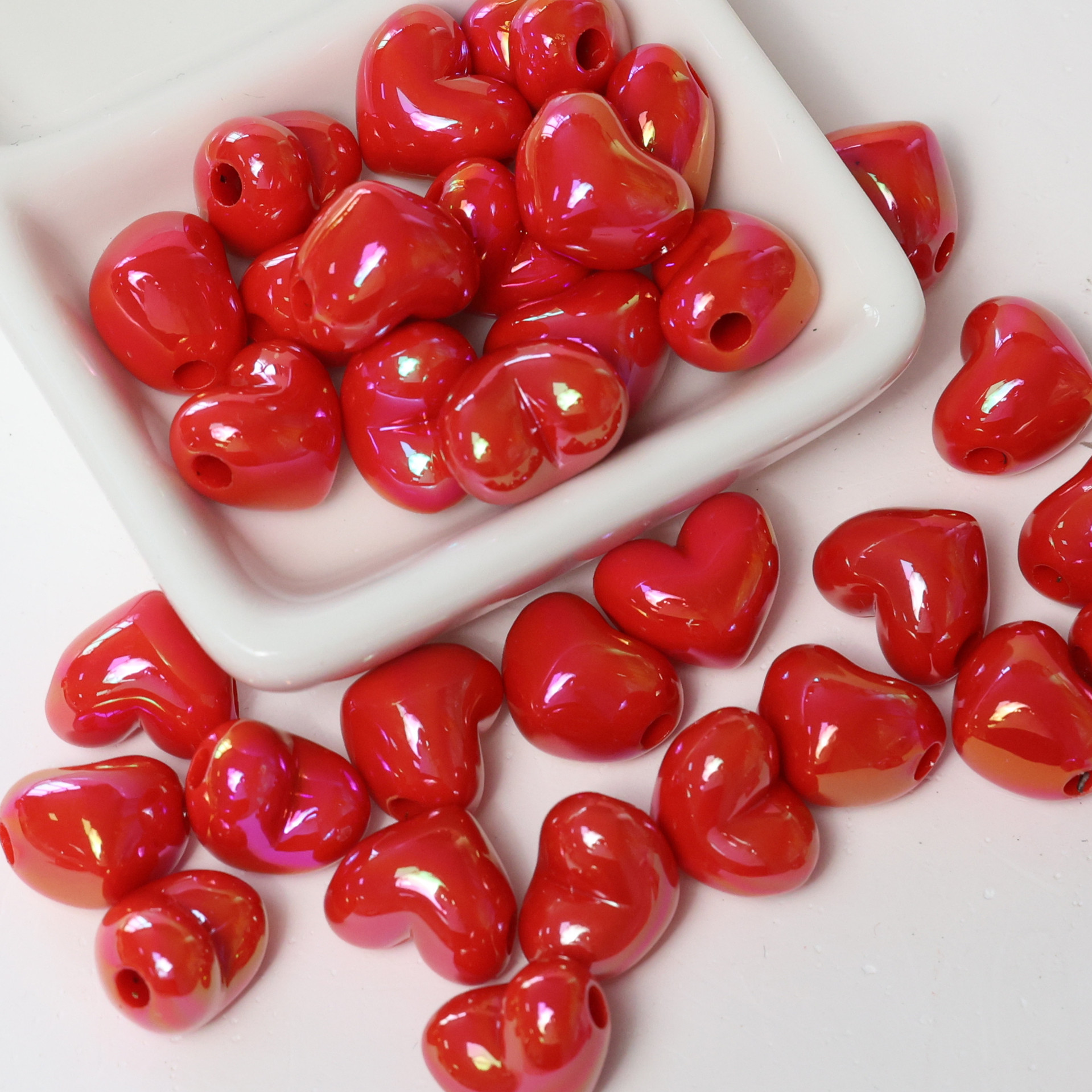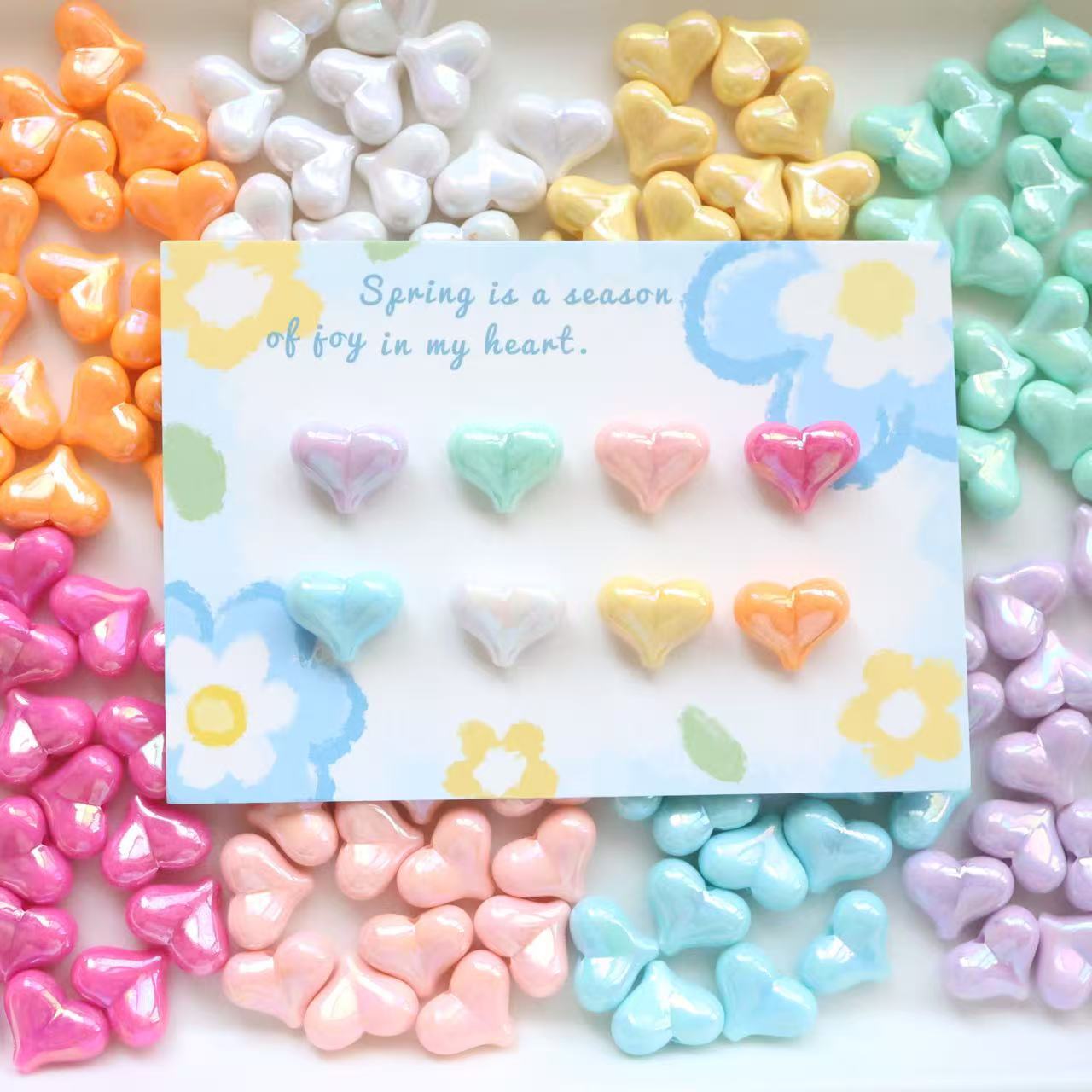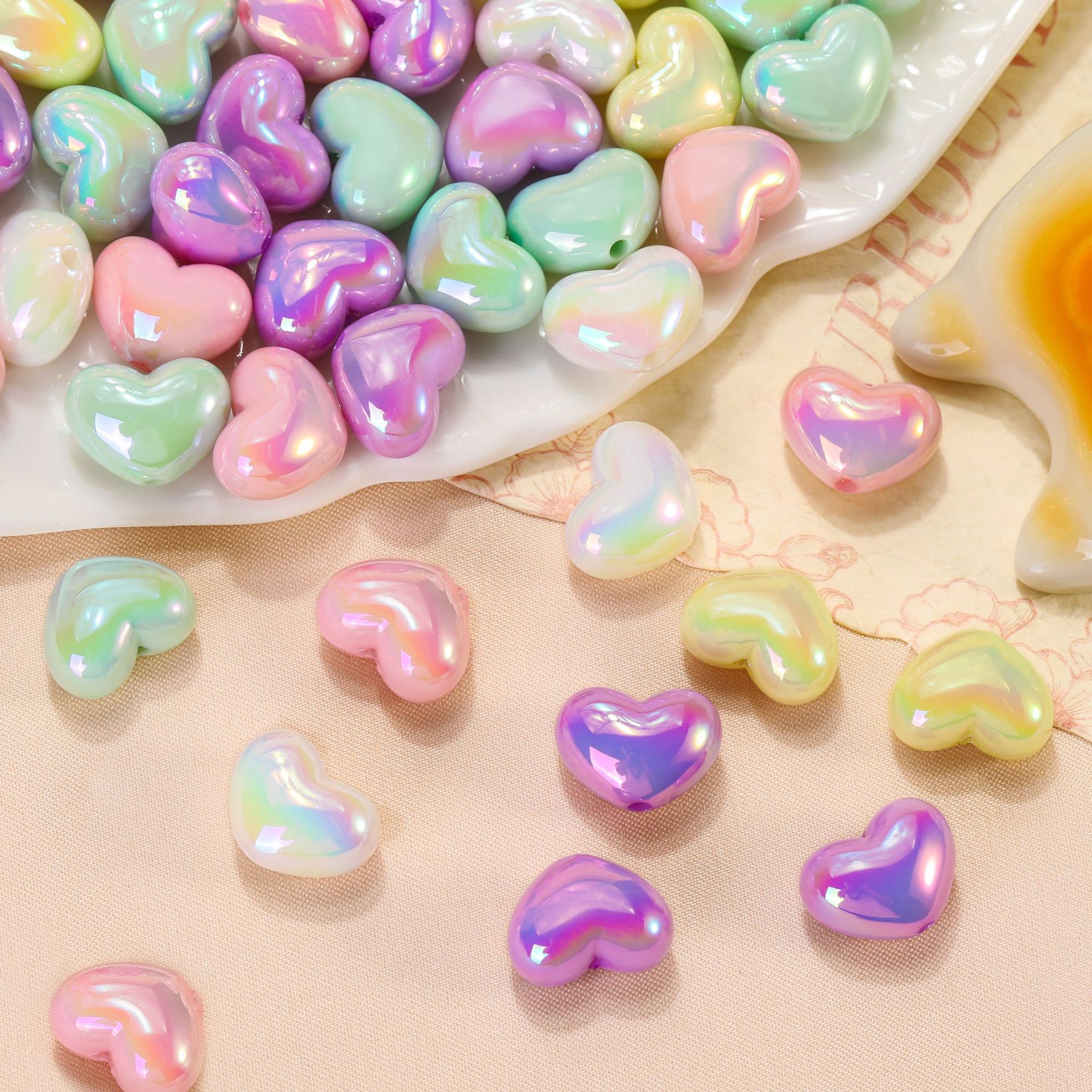 亚克力镀彩竖孔爱心珠子散珠 diy饰品配件手机链包挂心形串珠材料