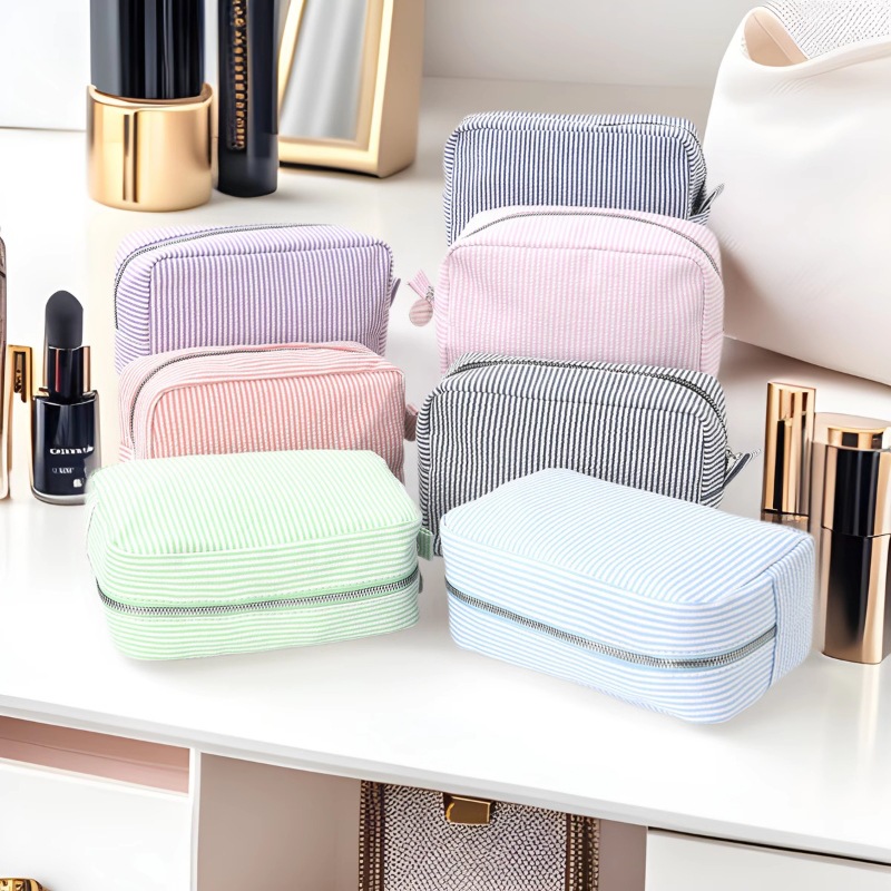 国境を越えた売れ筋のストライプタッセル化粧品バッグ、高価値の防水旅行用収納バッグ、大容量のポータブルトイレタリーバッグ