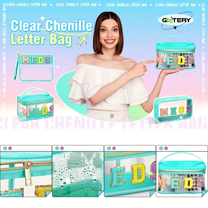 Amazonクロスボーダー刺繍収納バッグPVC透明アルファベット化粧バッグ旅行洗面バッグ大容量化粧バッグ