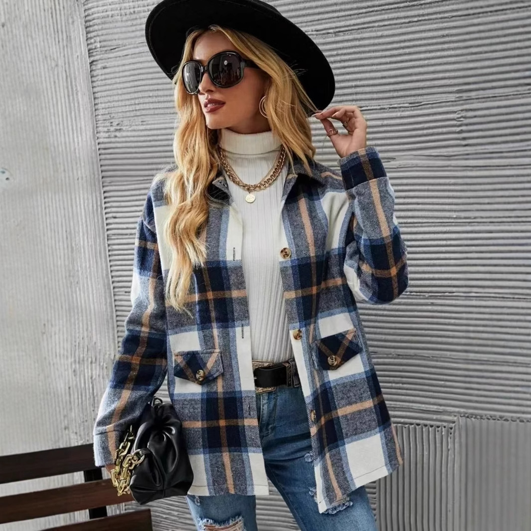 クロスボーダーアマゾンレディース新作ヨーロッパとアメリカの秋冬長袖カジュアルチェック柄ボタンダウンシャツジャケットジャケットシャツ