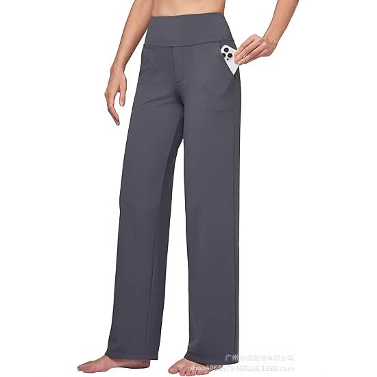 2024欧米アマゾンクロスボーダー秋新作レディースカジュアルゆるいポケットニットストレートハイウエストロングパンツ
