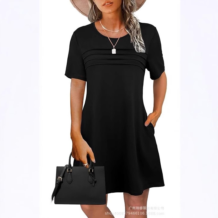 2026年欧米向け越境販売女性服アマゾン人気商品スクエアネックウエストプリーツ裾ミニ丈ショートワンピース