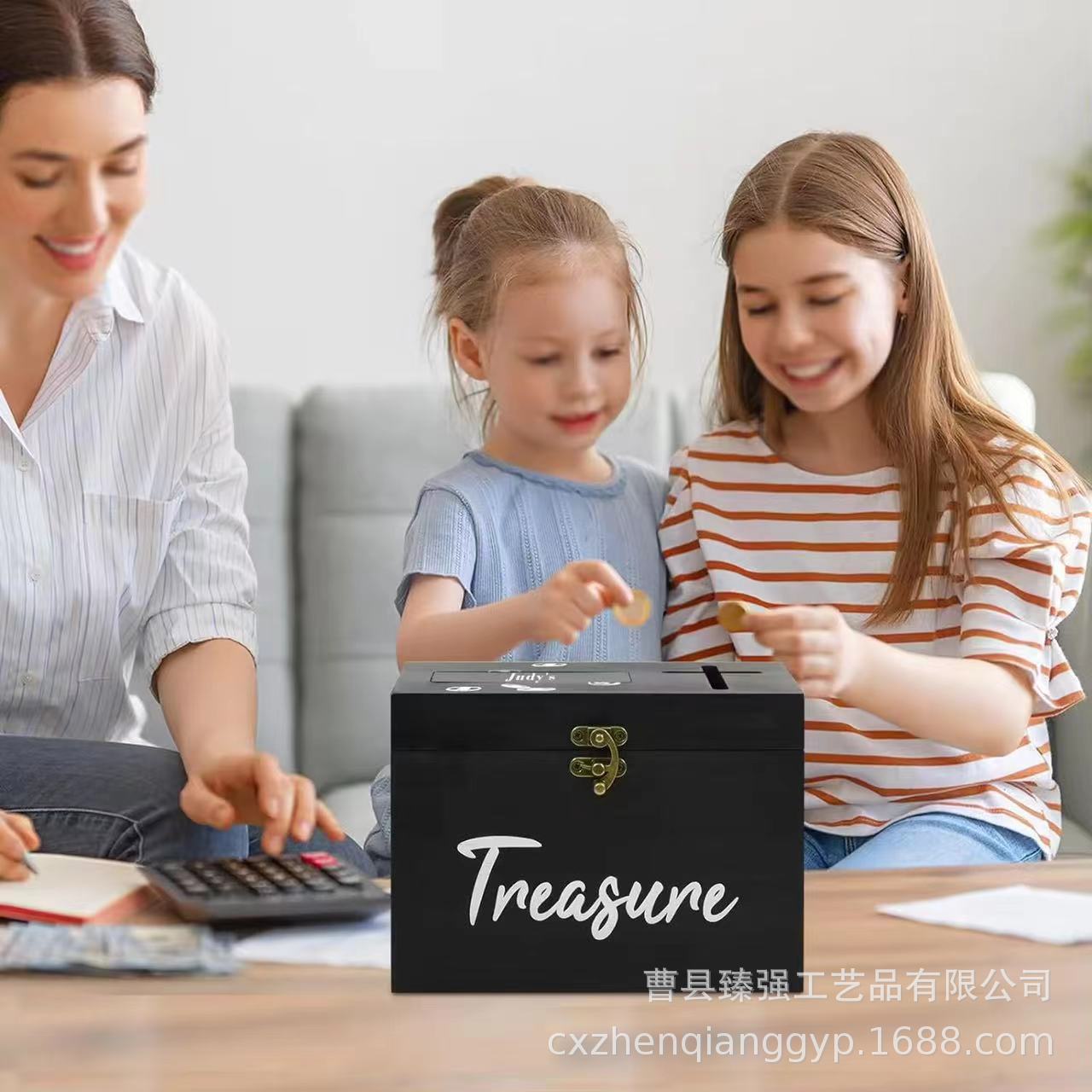 子供用木製貯金箱お年玉お小遣いロックカード付き手紙収納ケース掛け金入れ書き用木製ケース