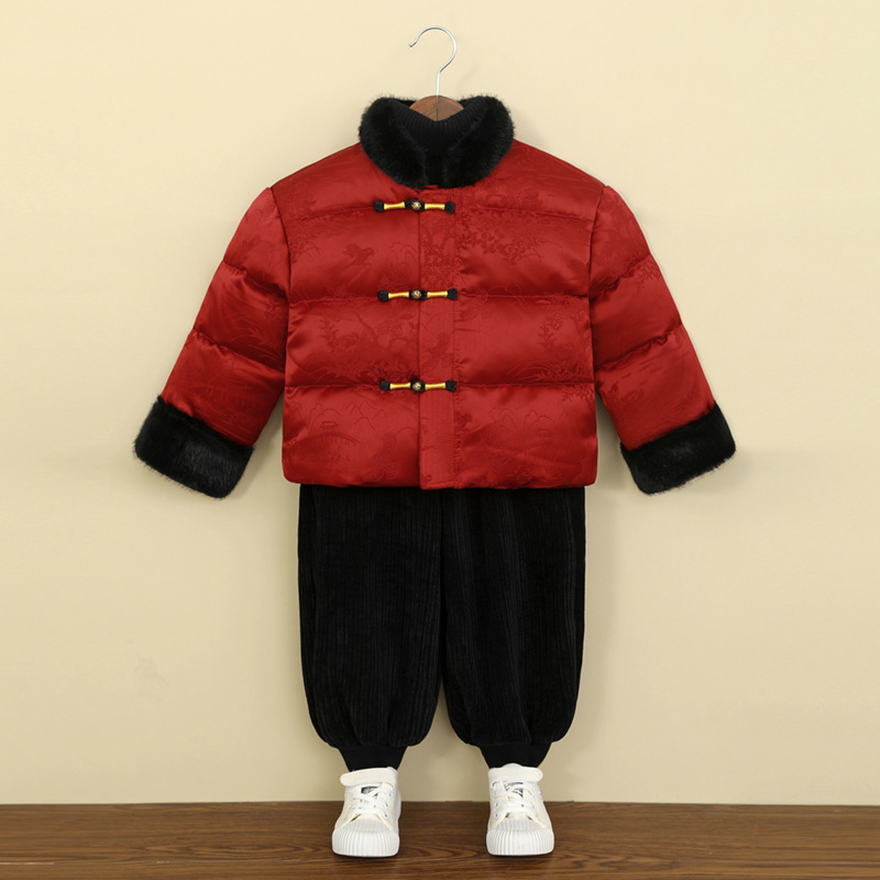 男童拜年服冬装加厚棉服外套宝宝周岁礼服儿童中式国风唐装过年服