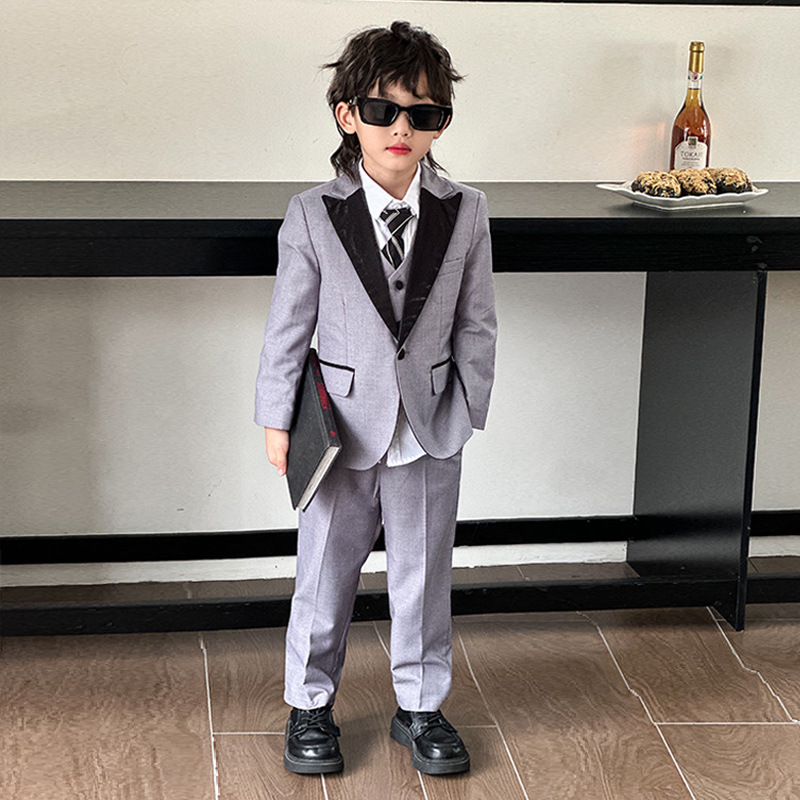 秋冬スタイルの子供用スーツセット男の子用英倫花童ドレス男の子用ベストスーツ3点セット
