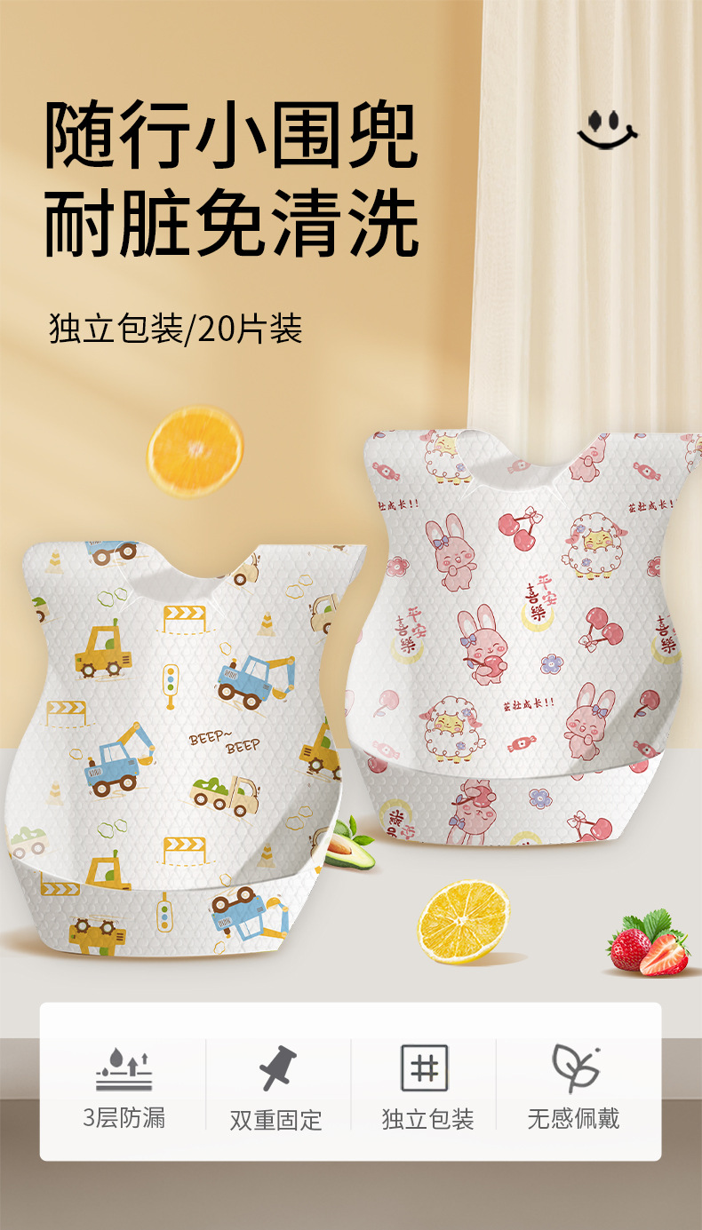 ママフルーツ使い捨てよだれかけ、赤ちゃん用食事用よだれかけ、360度回転、柔らかく通気性のあるよだれかけ