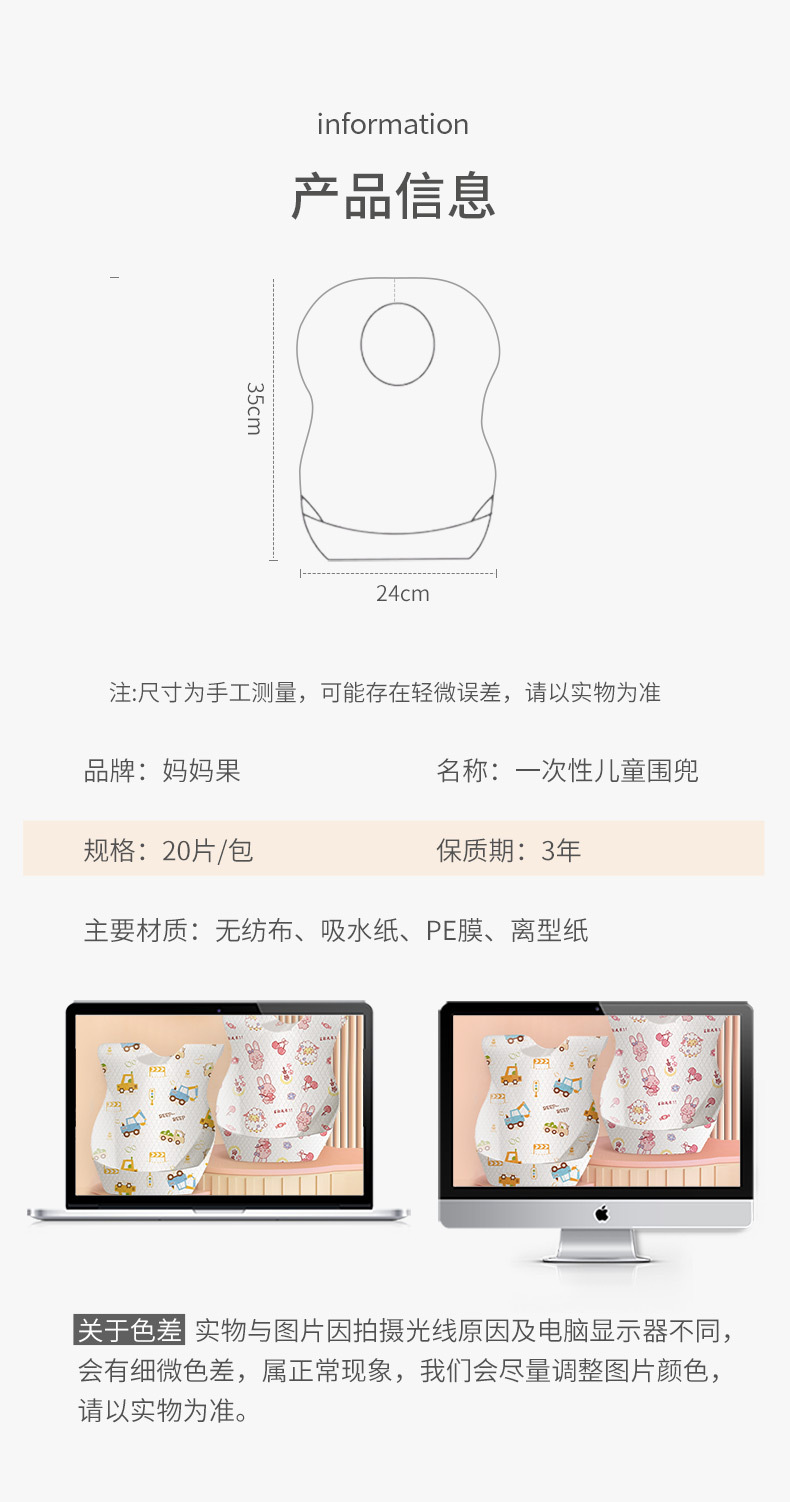 赤ちゃん用使い捨てよだれかけ、幼児用食事用よだれかけ、防水使い捨てよだれかけ、唾液よだれかけ、食事用よだれかけ、ベビー用カバーオール