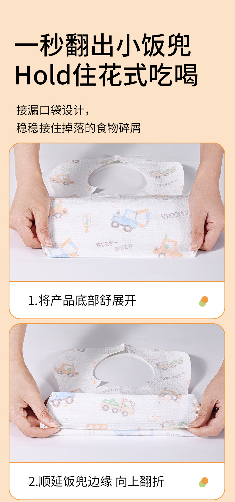 婧麒儿童一次性围兜饭兜宝宝口水巾防水吃饭围嘴喂饭兜防脏食饭兜