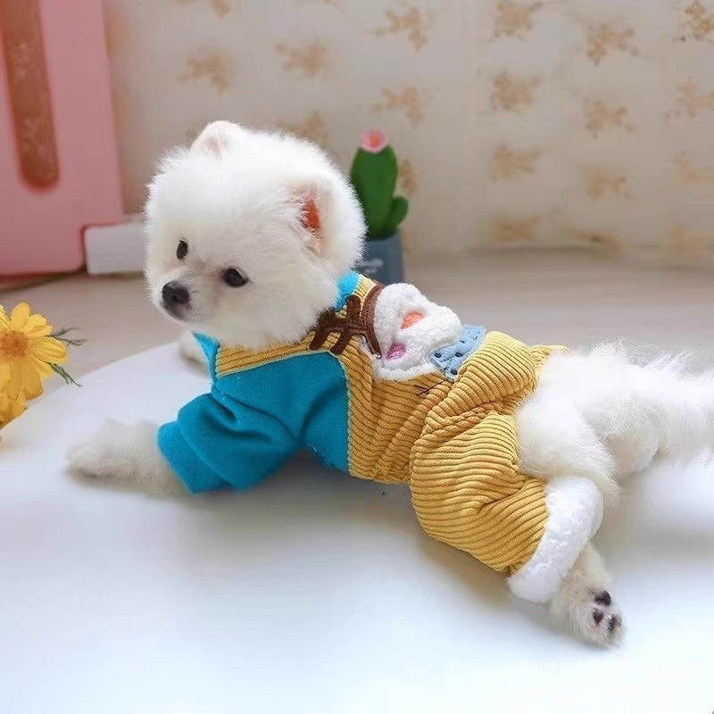 狗狗衣服秋冬款四脚衣保暖防掉毛加绒背带裤比熊泰迪博美宠物服饰