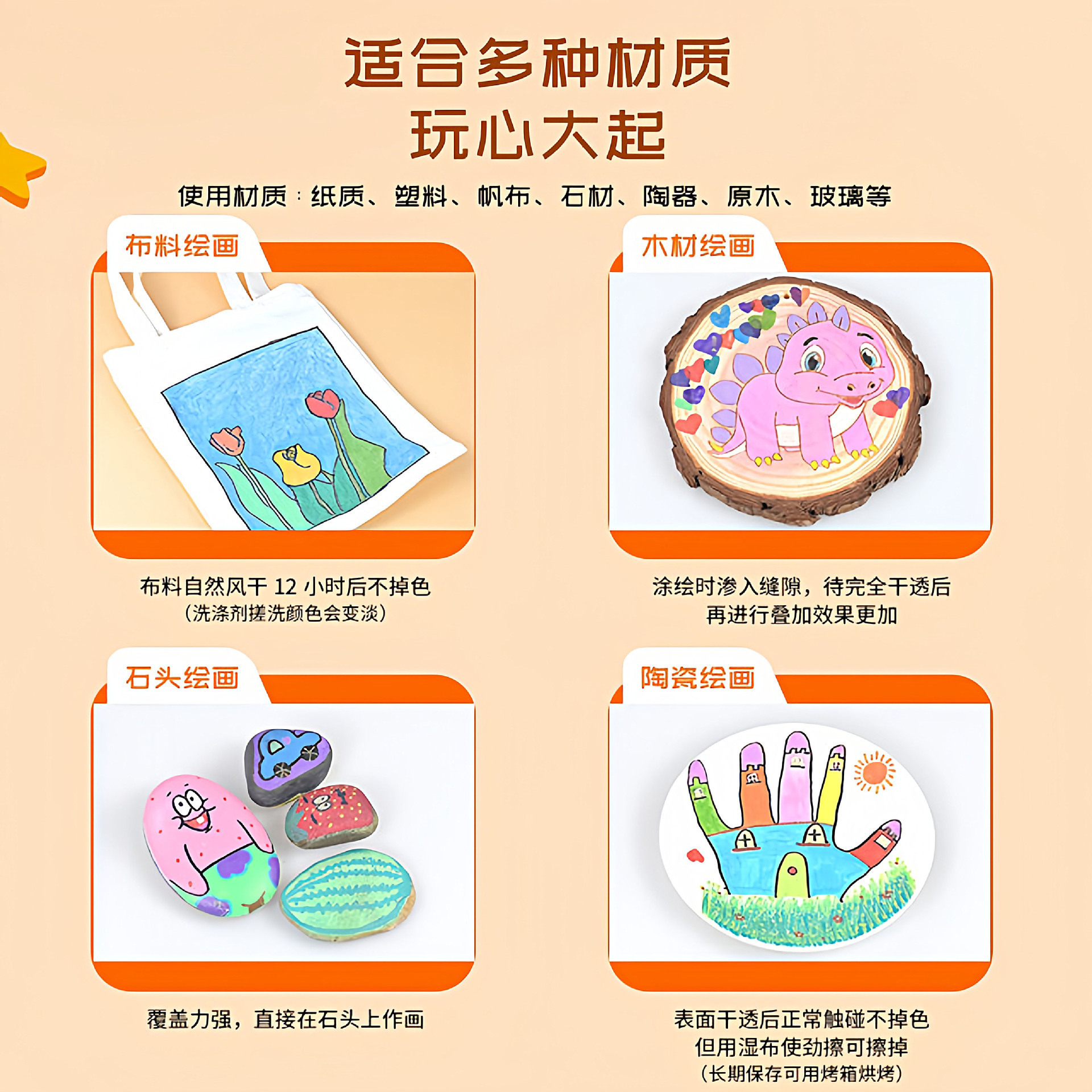 アクリルマーカーペン子供用非毒性、洗える、小学生アート水彩ペン、不透明、積み重ね可能なカラーブラシ