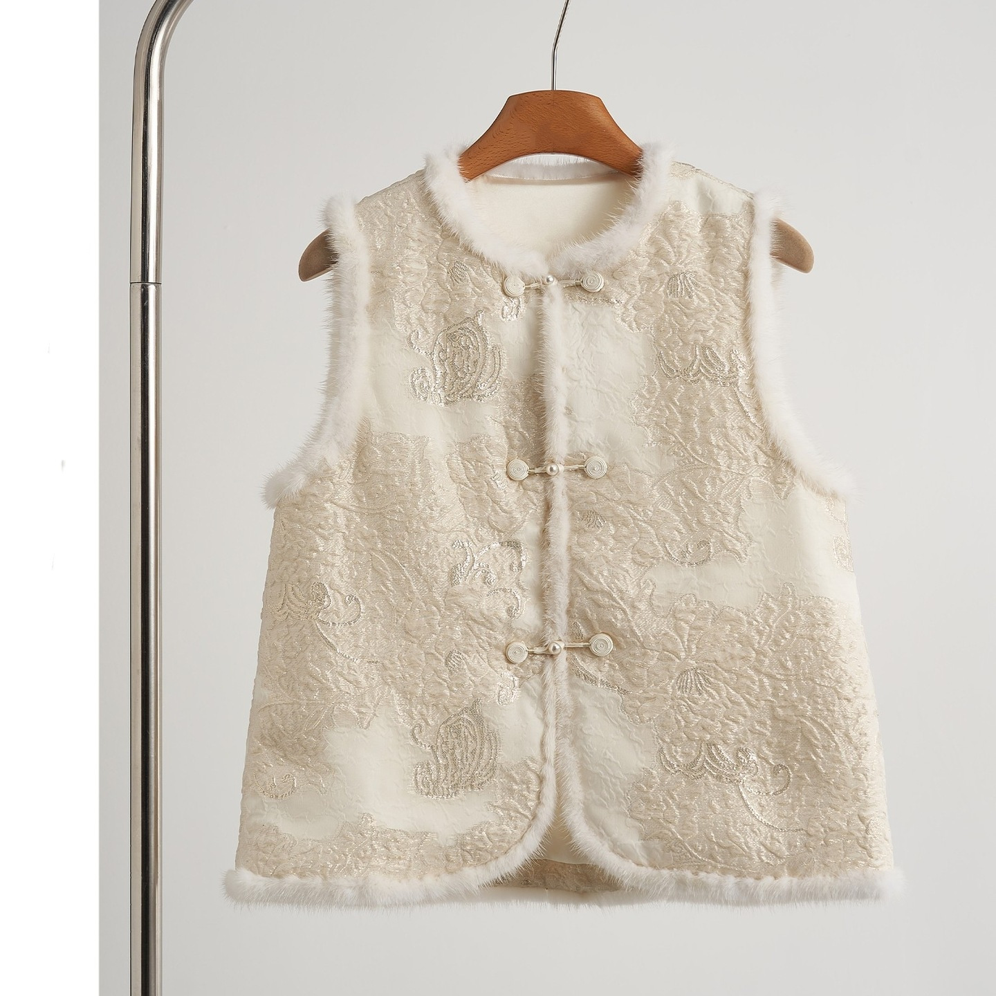 新中式国风提花马甲背心女2025冬季新品水貂毛重工刺绣夹棉外套女