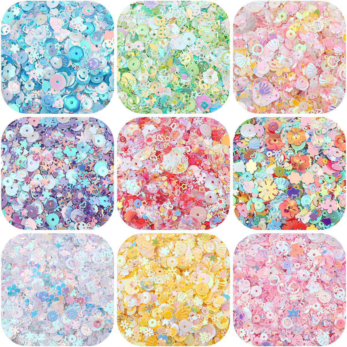 小さなスパンコール貝殻紫青ピンク系diyスパンコール装飾フラッシュ粉滴糊を混ぜて顔のアイメイク材料を充填する