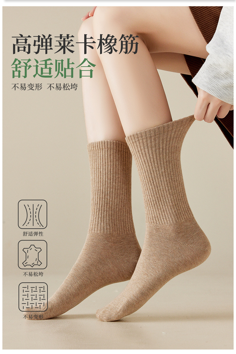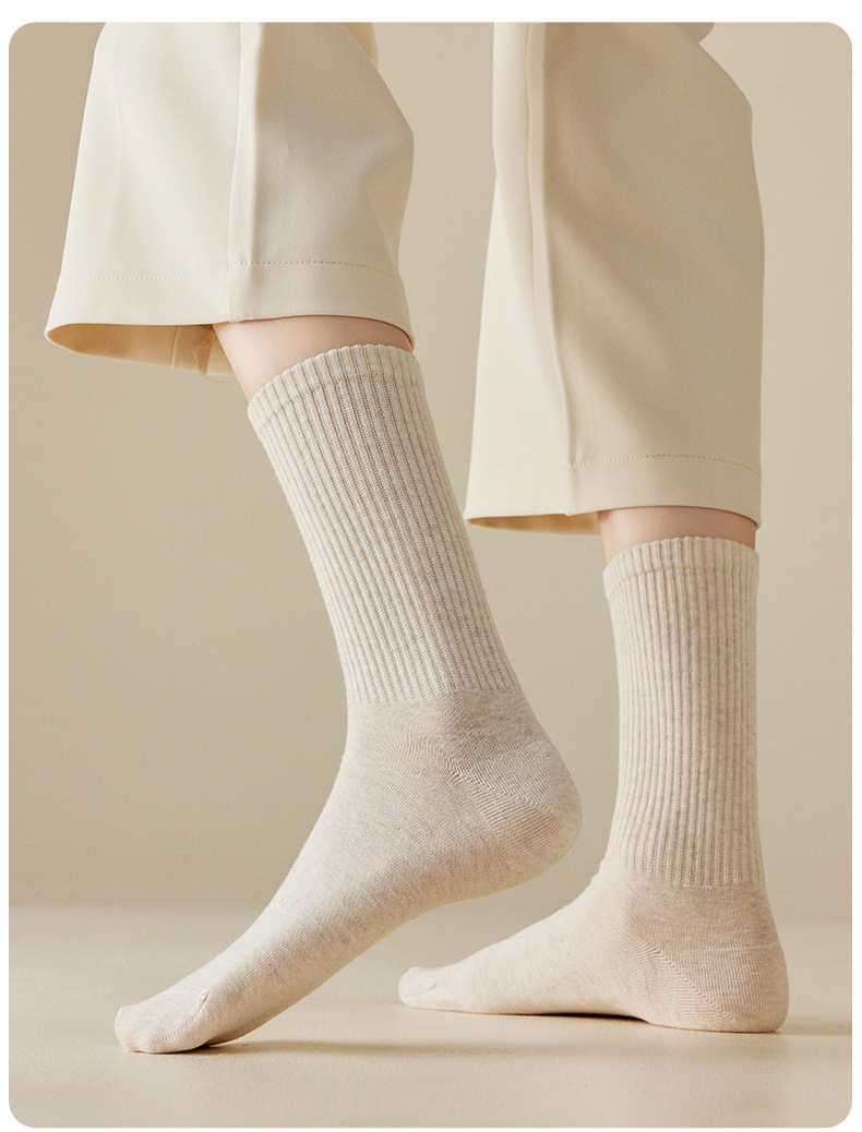 Zhuji 靴下 レディース 春秋 ミッドチューブソックス 綿靴下 純綿靴下 レディース カジュアル 秋 吸汗消臭 抗菌 レディース靴下