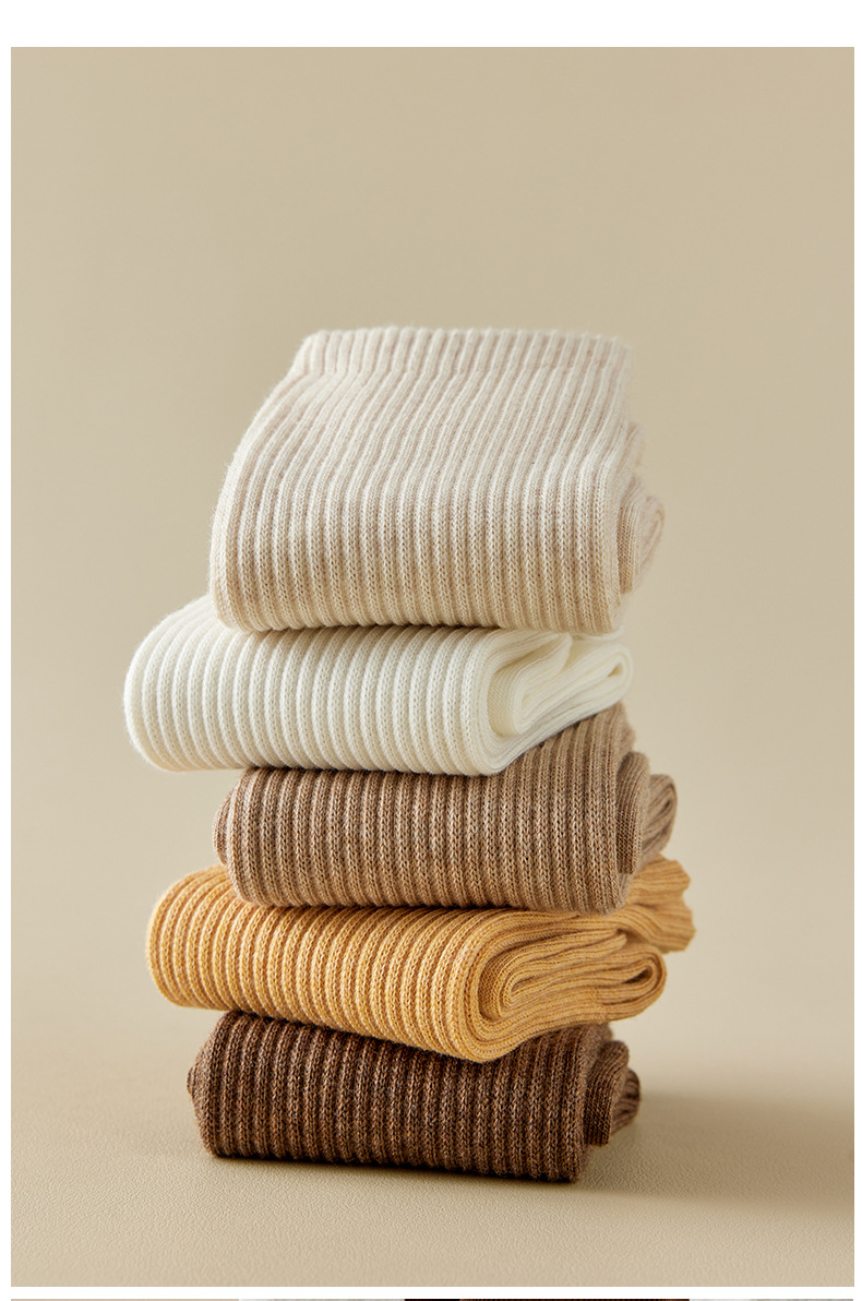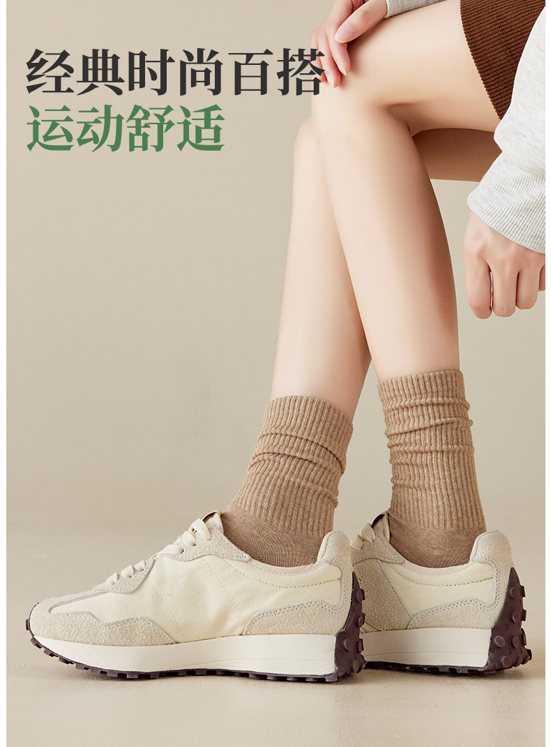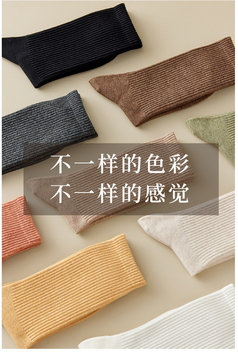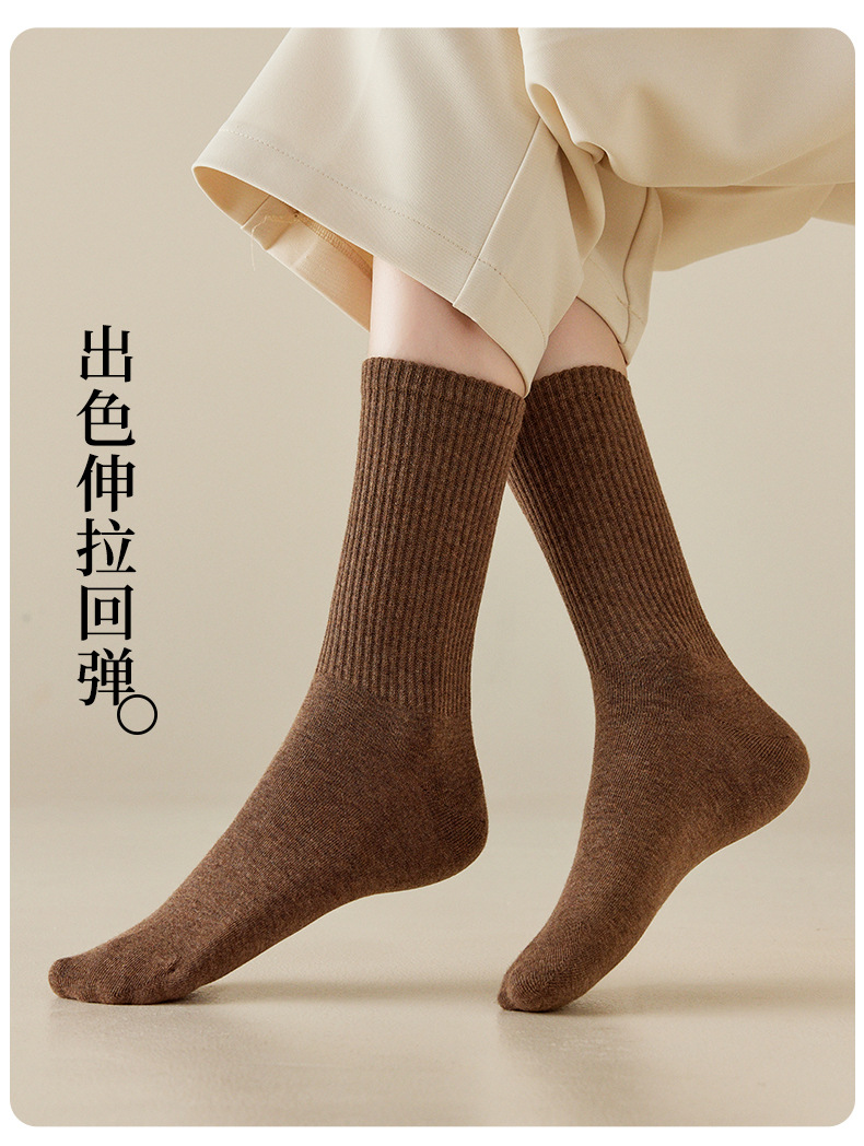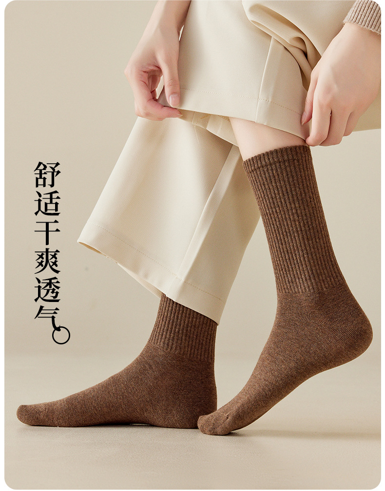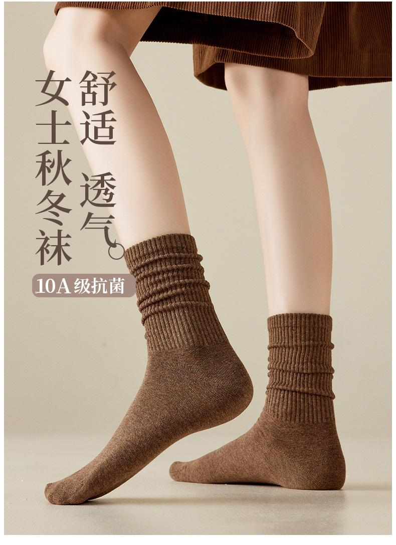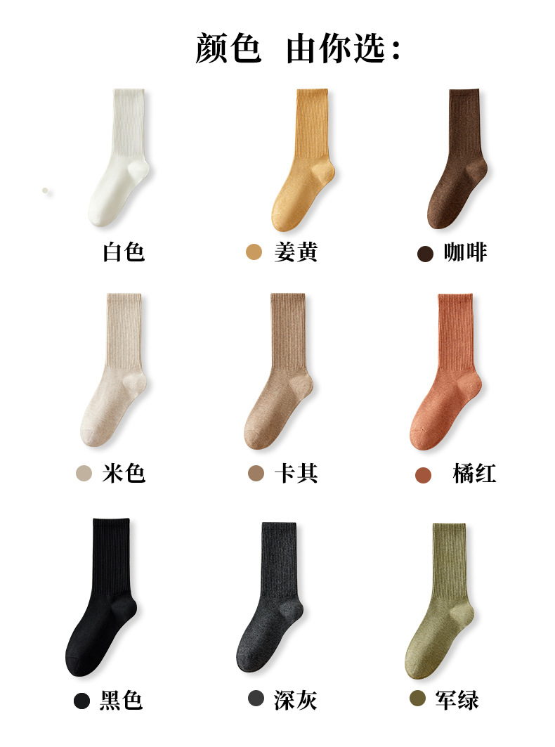 袜子女中筒袜25秋冬新款纯色棉袜百搭舒适日系秋冬卷边松口袜批发