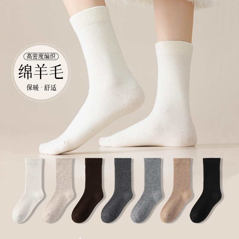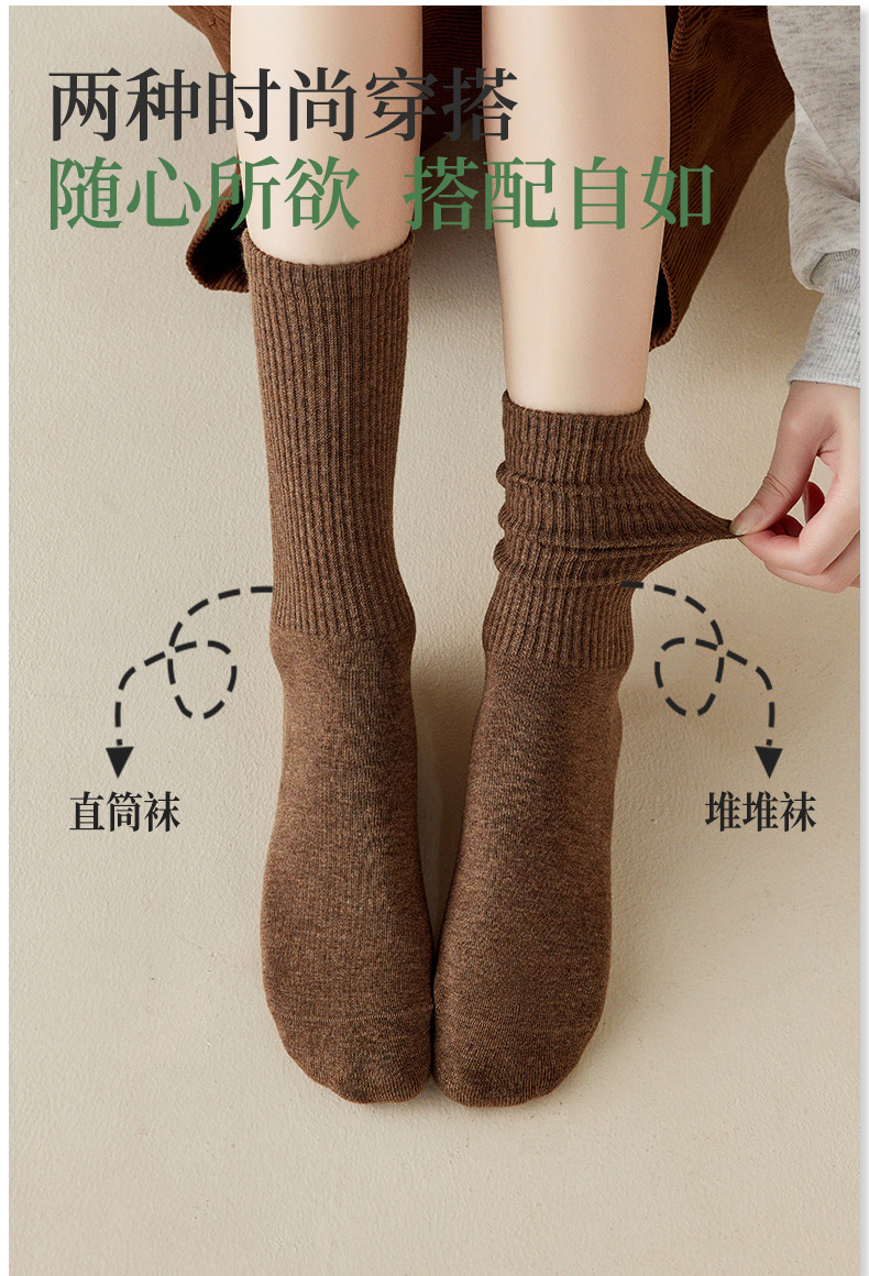 羊毛袜子女月子袜纯色堆堆袜秋冬无骨ins日系学院中筒袜批发诸暨