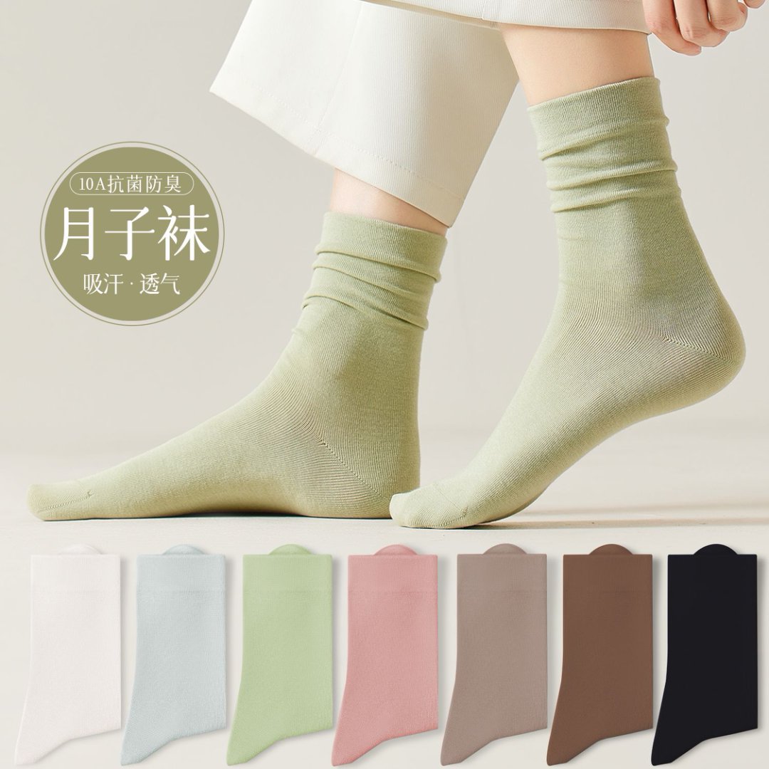 靴下の女性の中筒靴下の女性は汗を吸って空気を通す純色の綿の靴下の抗菌の潮流の夏の中筒の月子のストッキングを積み重ねます。