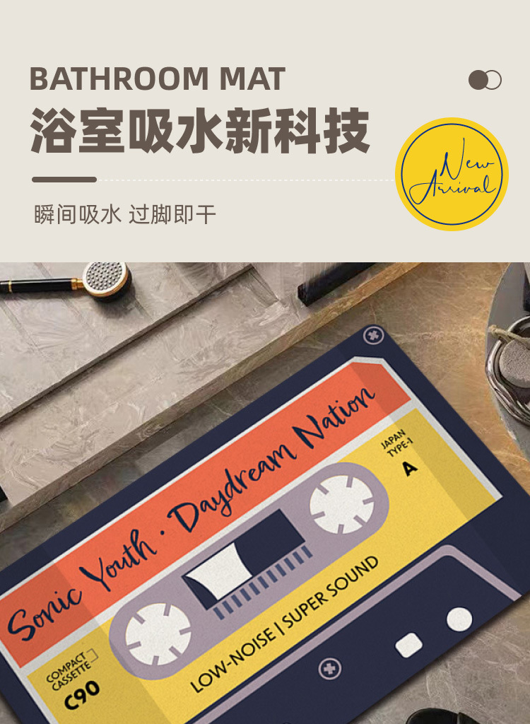 复古唱片卫生间硅藻泥软垫浴室淋浴间吸水脚垫厕所门口速干地垫