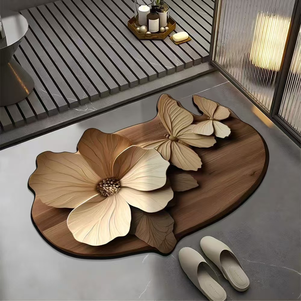 軽豪華風3d花卉蝶異形珪藻泥マット浴室トイレ吸水滑り止め速乾足マット代発