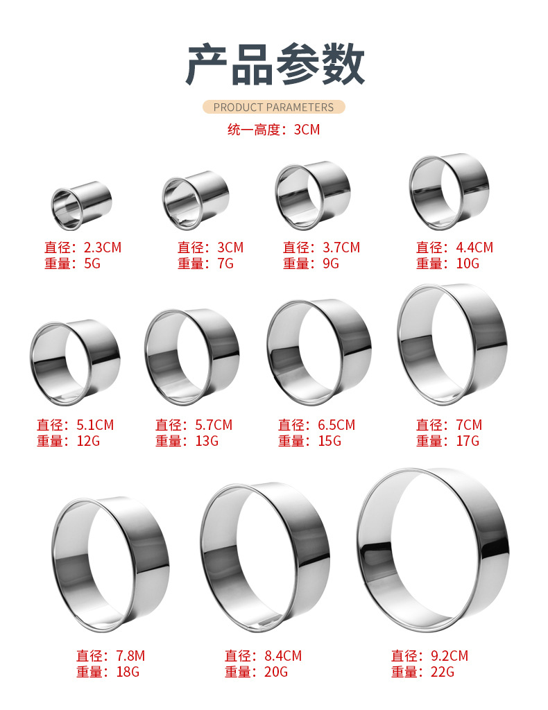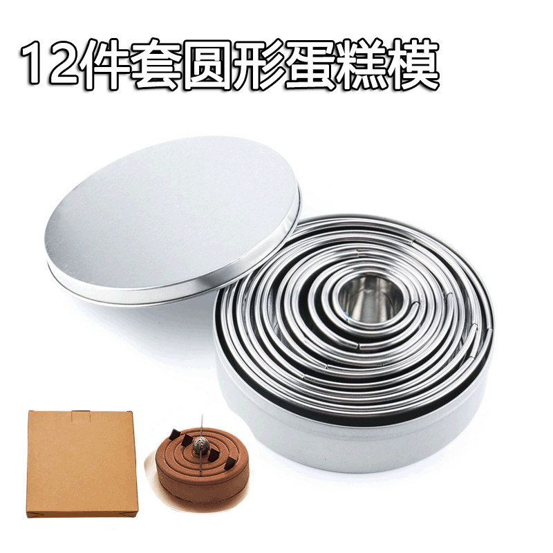 现货不锈钢慕斯圈12件套圆形蛋糕模饼干模具甜甜圈模具饭团烘焙模
