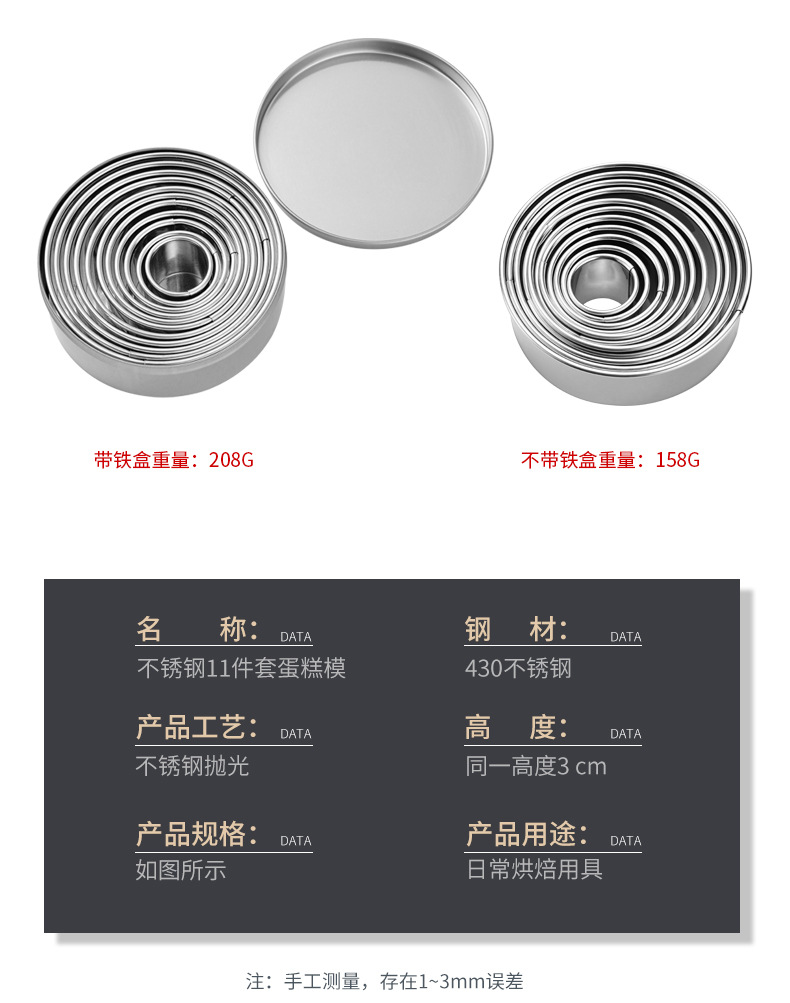 现货慕斯圈饼干模饺子皮切模不锈钢圆形饼干模圆形压模11/12件套