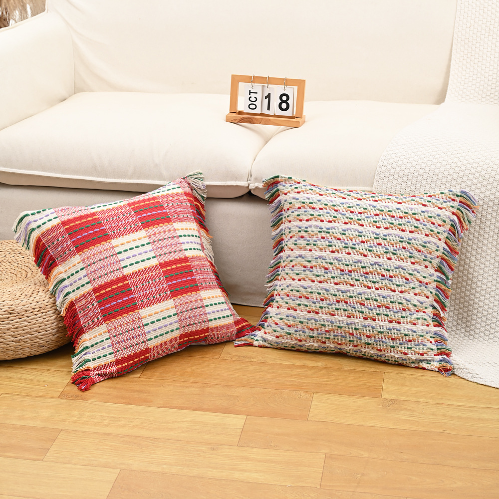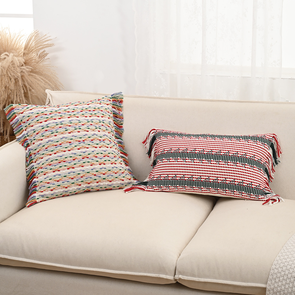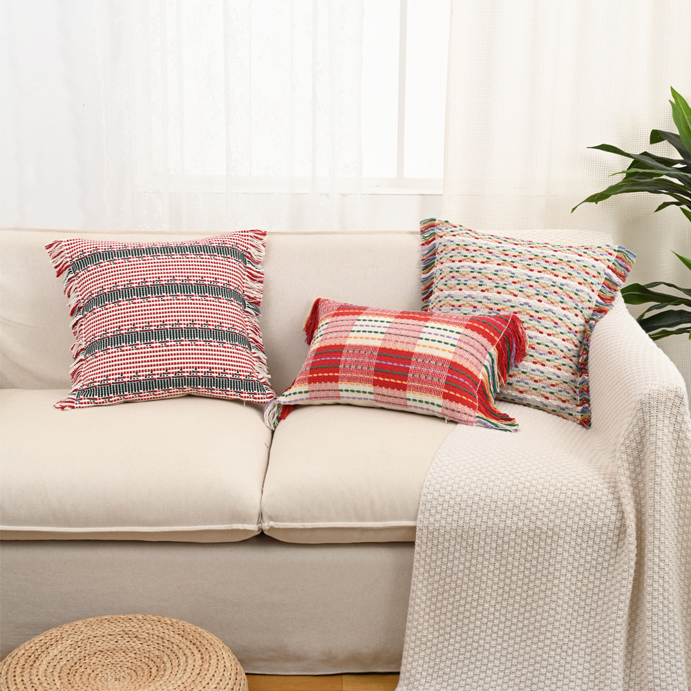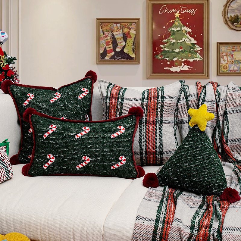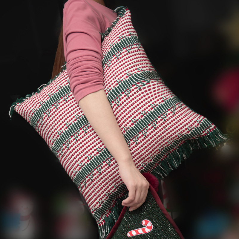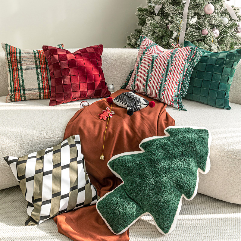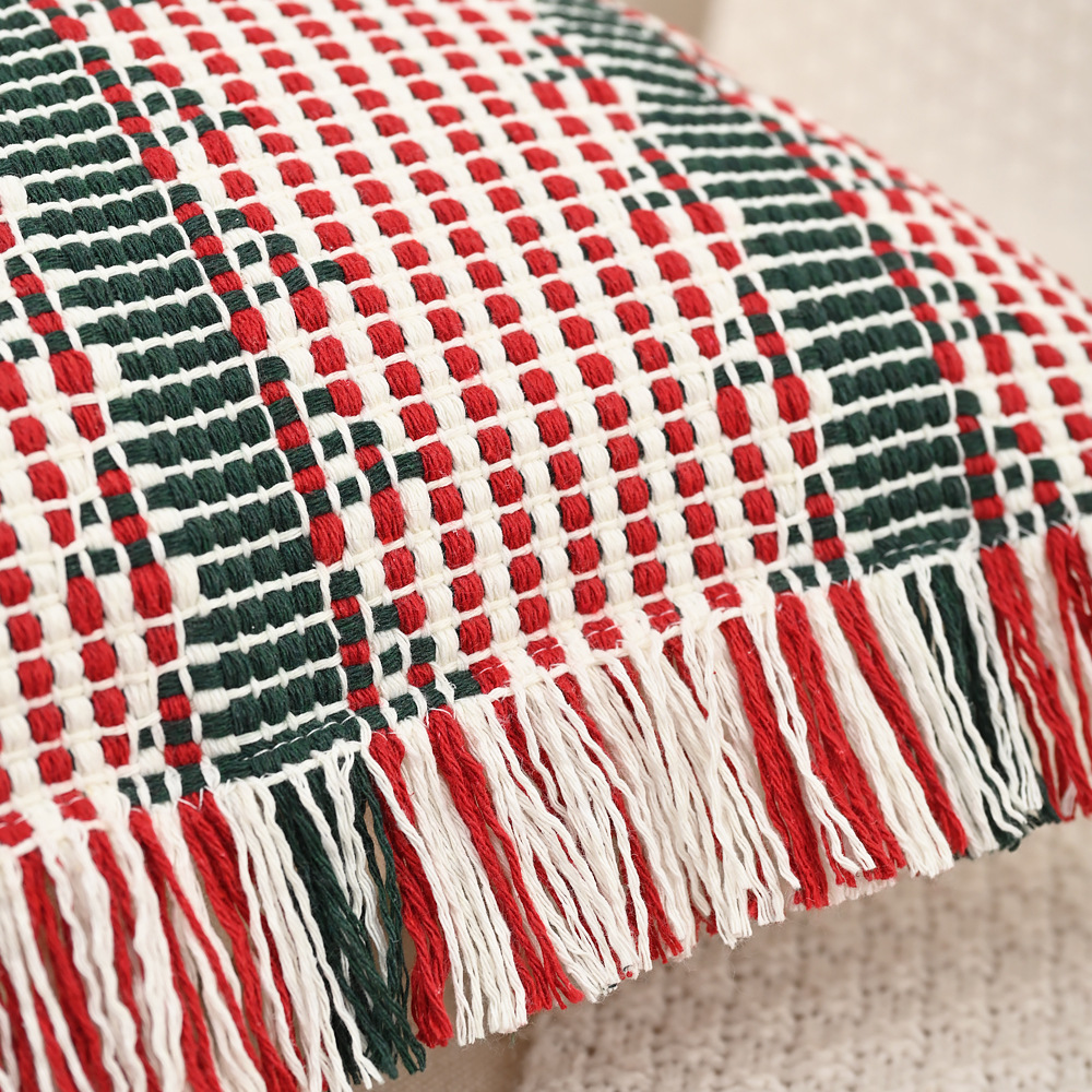 北欧シンプルクリスマスプレゼント新年赤緑綿線流蘇抱枕客間ソファー枕カバー同タイプティッシュケース