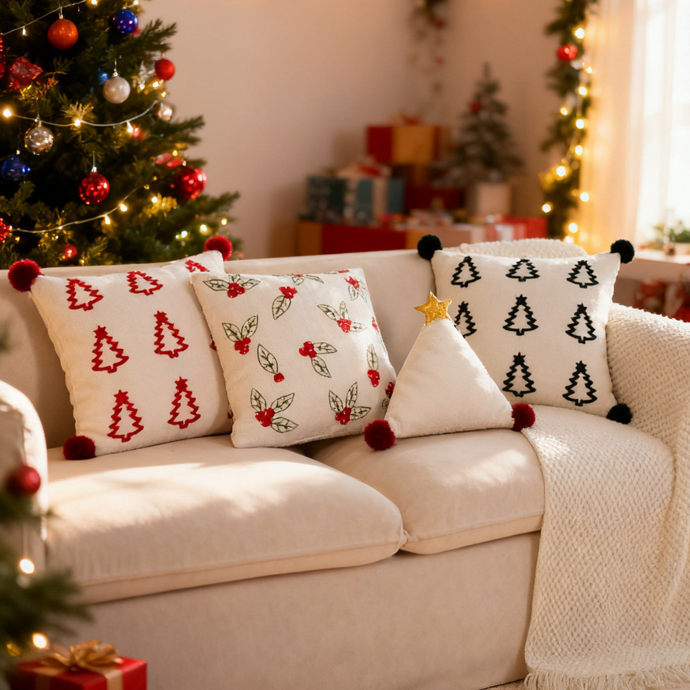 跨境北欧ins圈圈绒毛巾绣圣诞氛围装饰抱枕套 客厅沙发家居靠垫套
