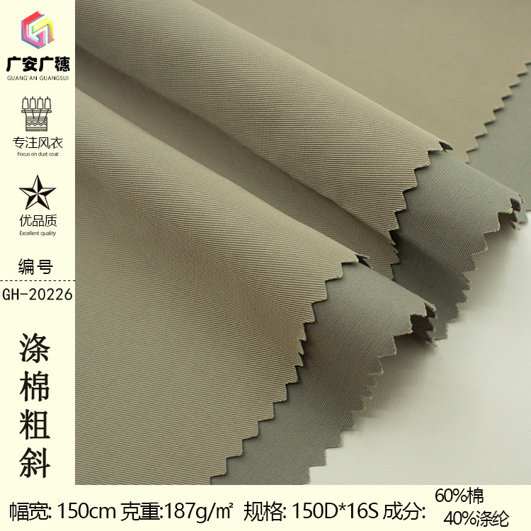 ポリエステル斜织トレンチコート生地150D加厚コットン感斜め作业服生地カジュアルコート防水生地