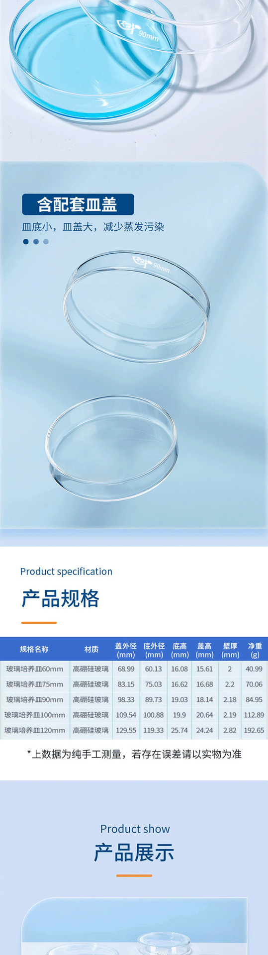 ガラス培養皿90mm60mm75mm120mm150mm細胞培養高ホウ素シリコン培養皿ガラス平皿