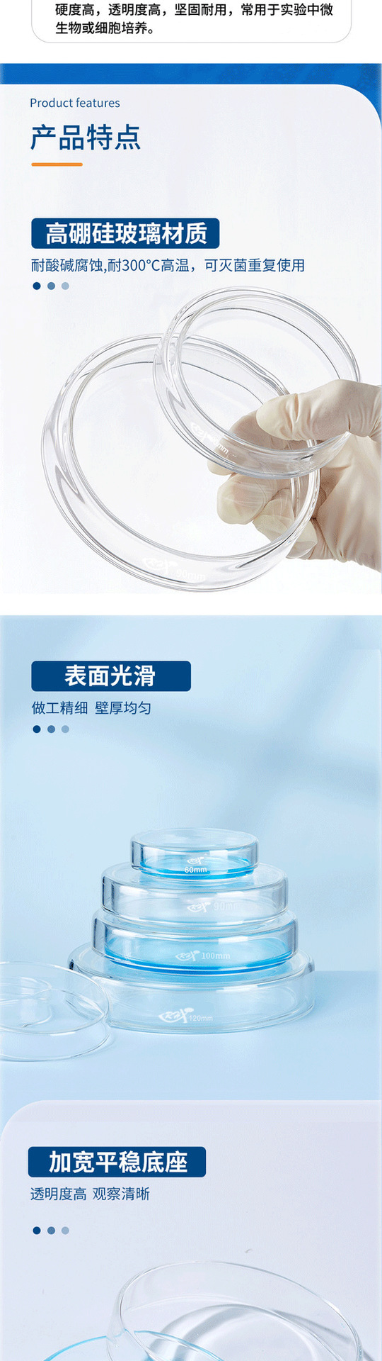 高ホウ素シリコンガラス培養皿生物実験細胞細菌培養皿60 75 90 100 120 150mm