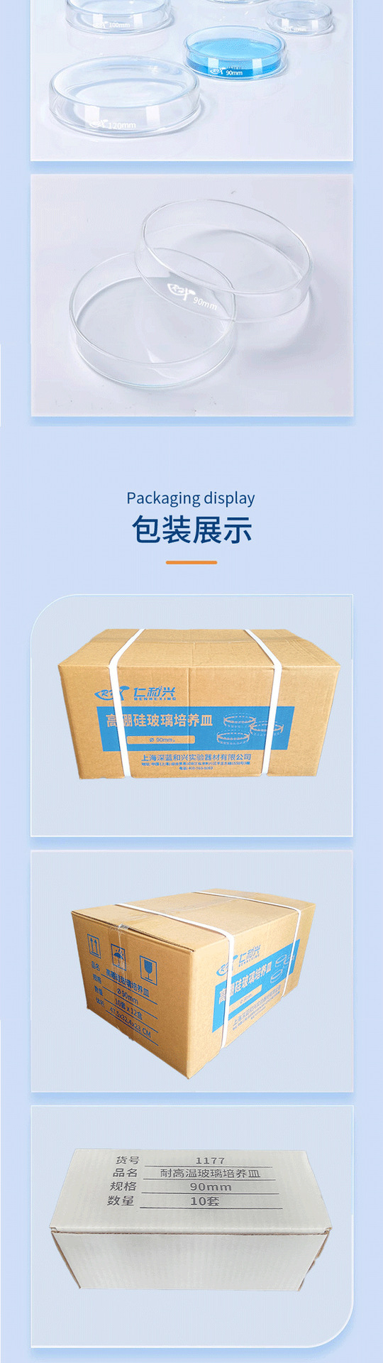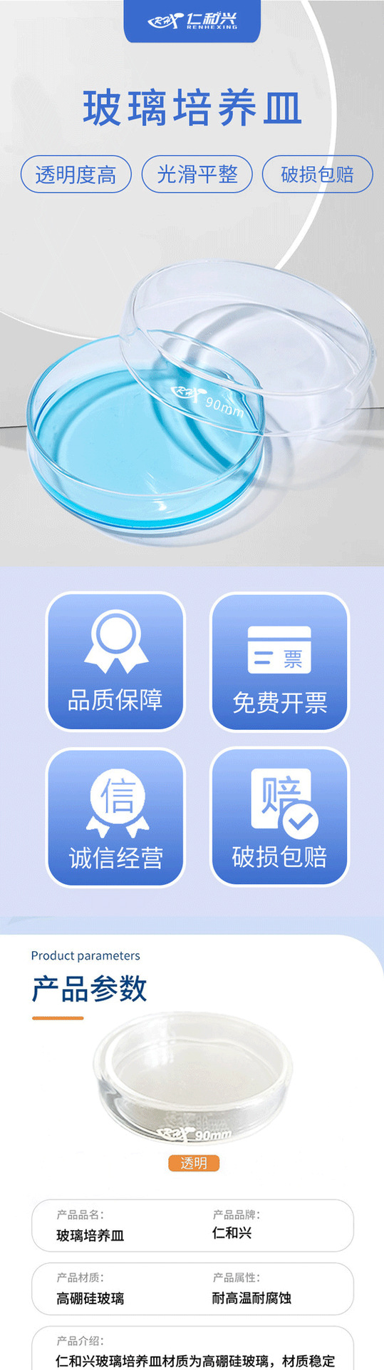 仁和興ガラス培養皿は細菌細胞培養皿実験室の耐高温高圧滅菌の各規格を厚くします。