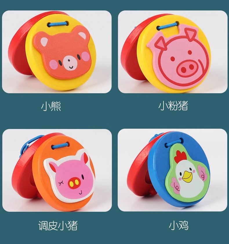 国境を越えた木製子供用カスタネットオルフ音楽器パーカッションカスタネット漫画動物早期教育啓発赤ちゃんのおもちゃ