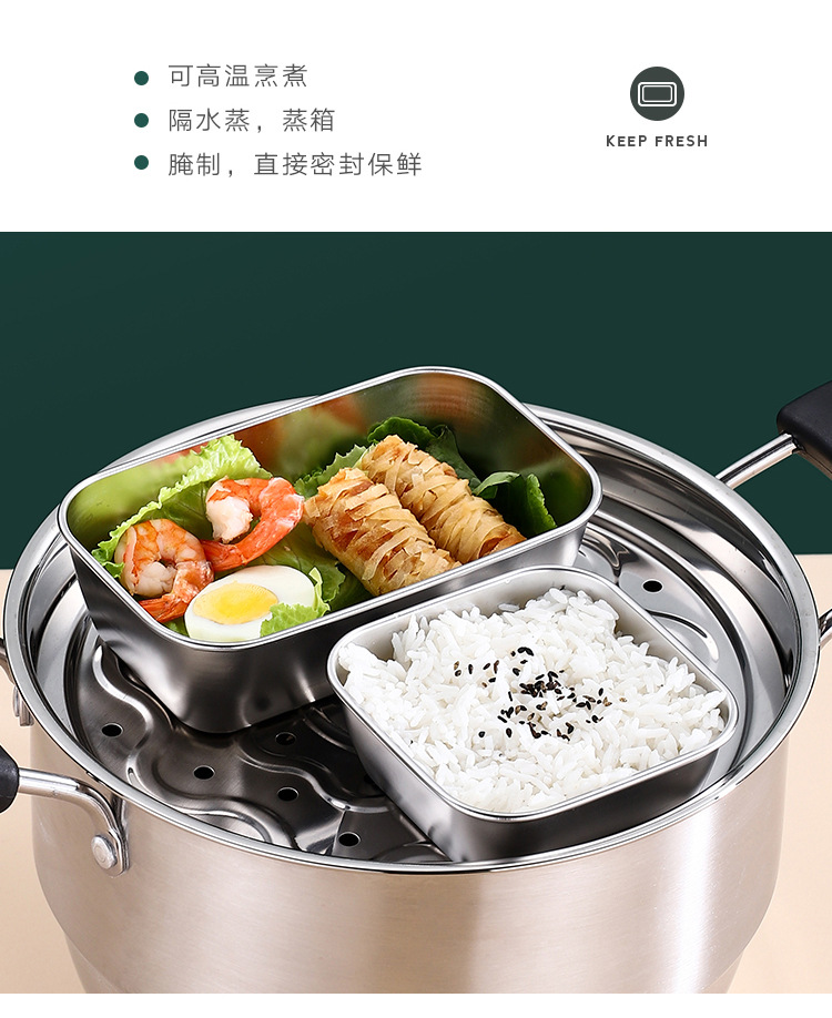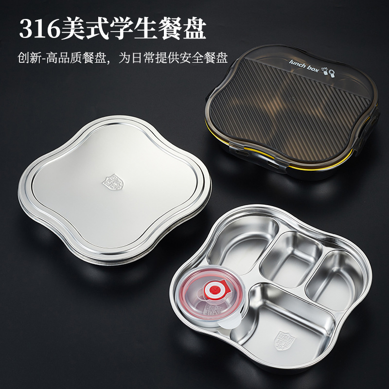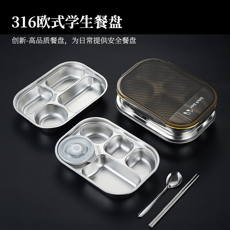 316食品級ステンレス食器密封格304弁当箱サラリーマン学生食堂ファストフード皿