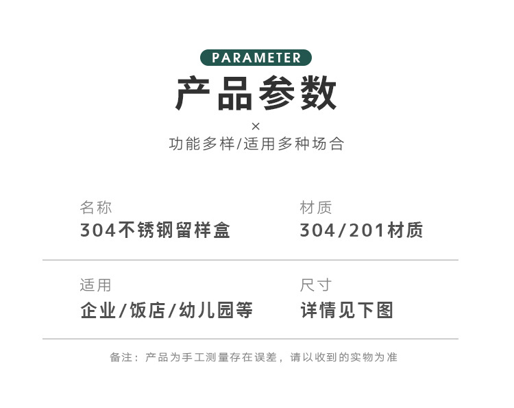 304ステンレスサンプル箱幼稚園学校工場食堂食品サンプル瓶台所留菜箱正方形